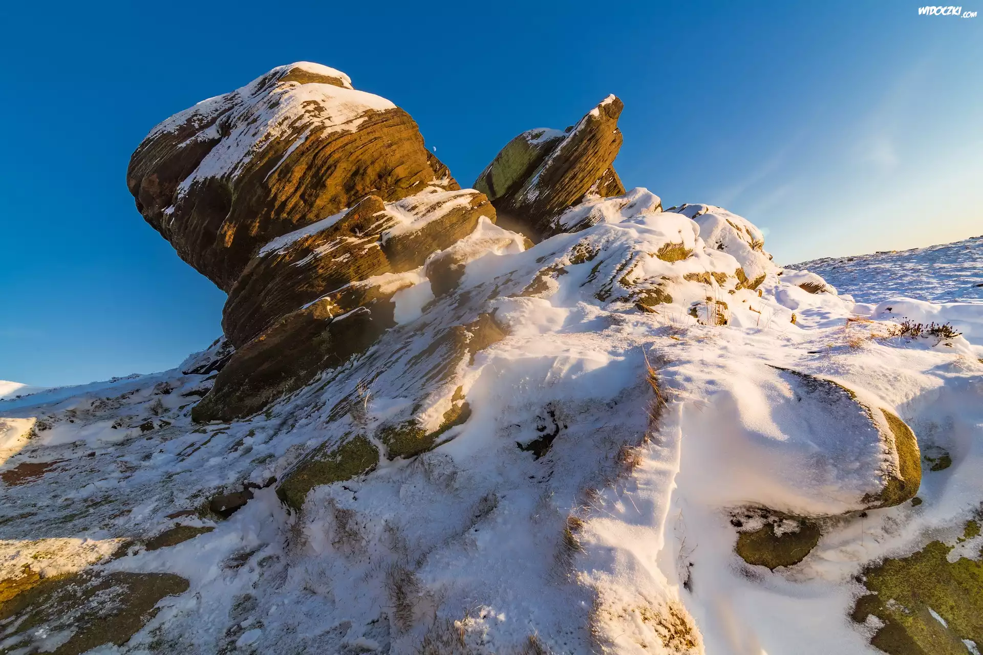 Zdjęcia, Zima, Śnieg, Skały, Piaskowiec