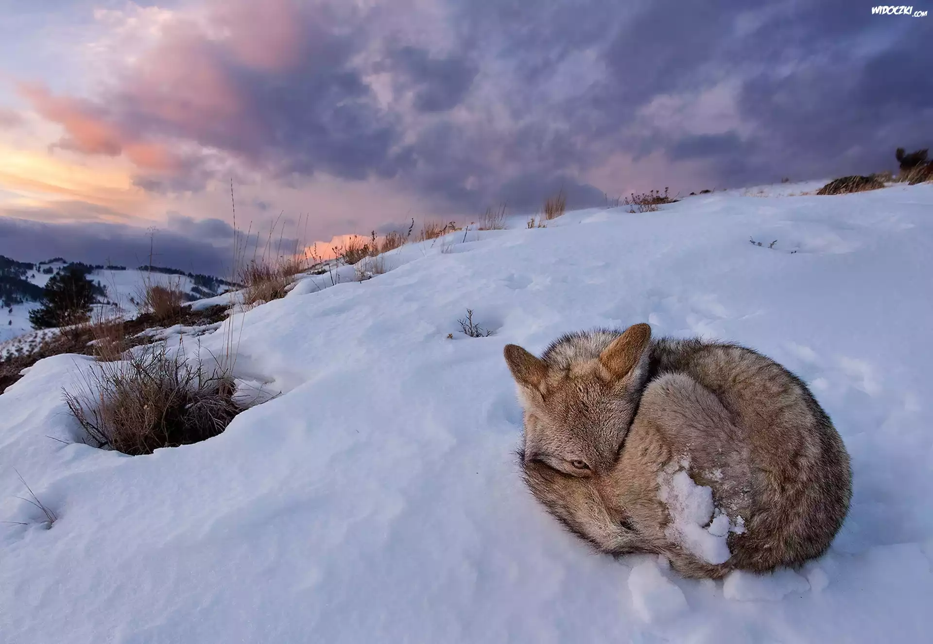 Zdjęcia, Zima, Śnieg, Skulony, Lisek