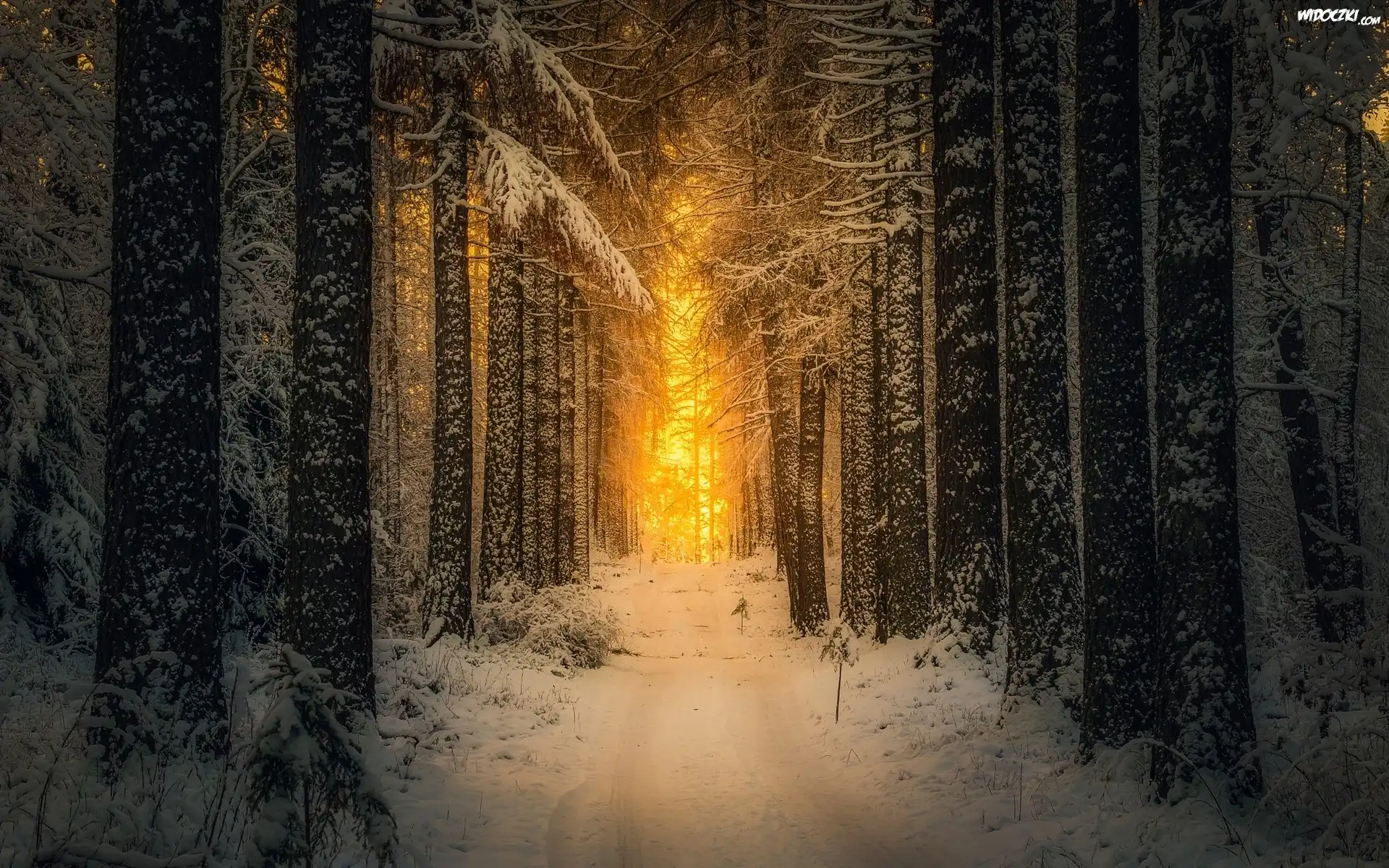 Zdjęcia, Zima, Droga, Promienie Słońca, Las