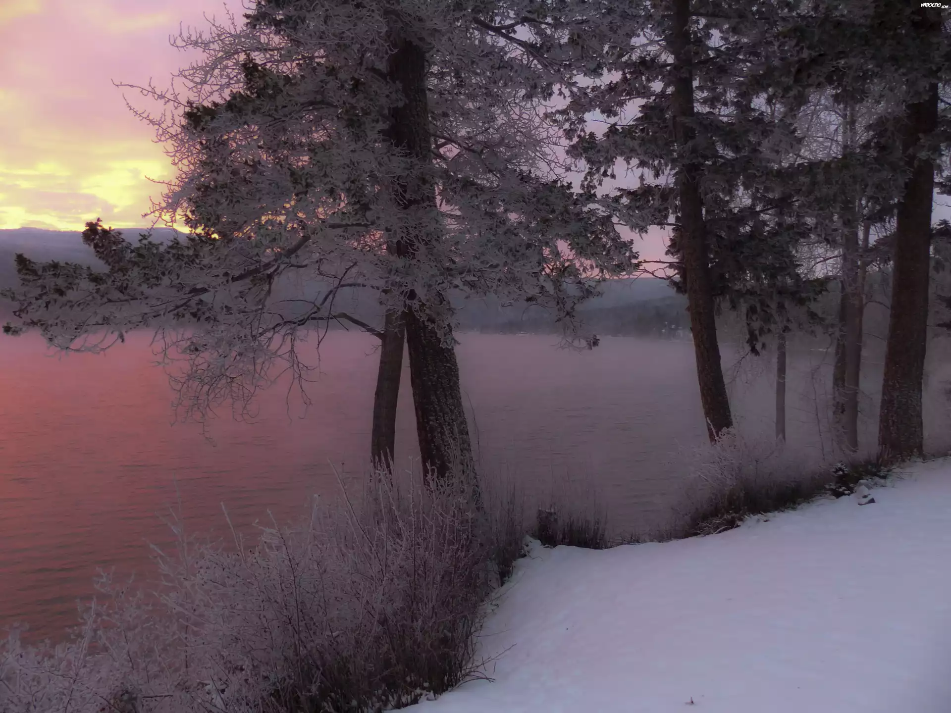 Zima, Wschód, Słońca, Jezioro