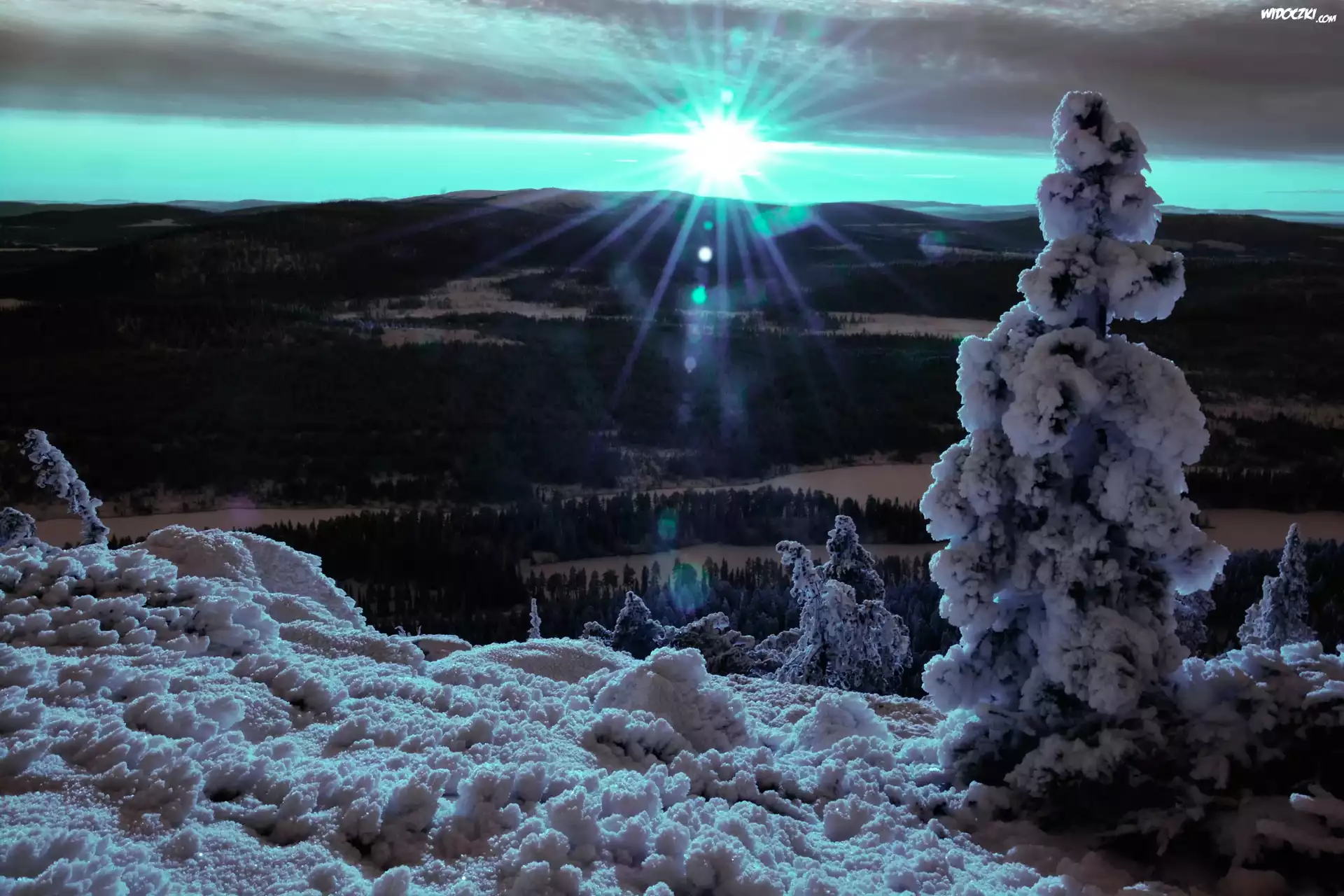 Zdjęcia, Zima, Wschód Słońca, Laponia