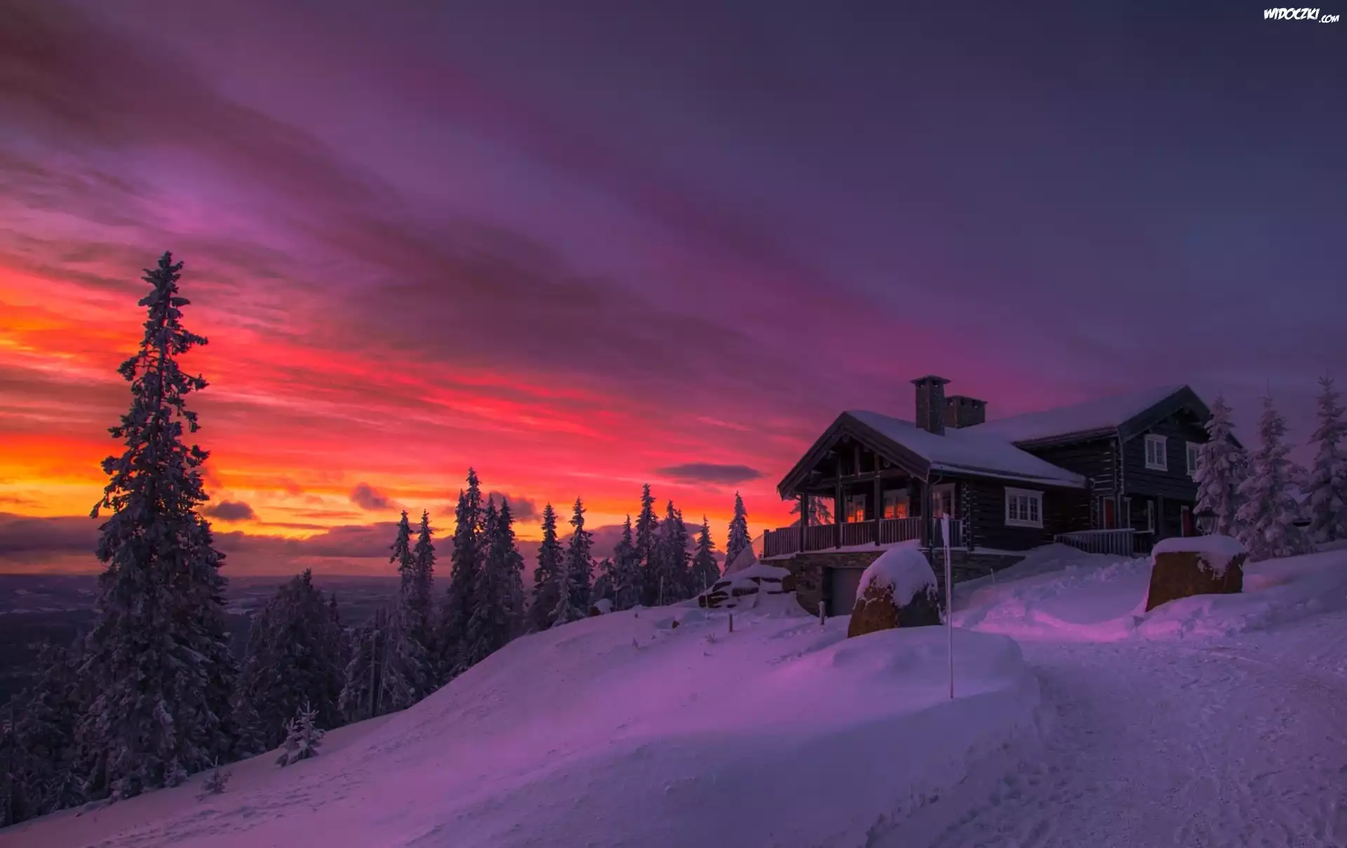 Zima, Zachód Słońca, Dom