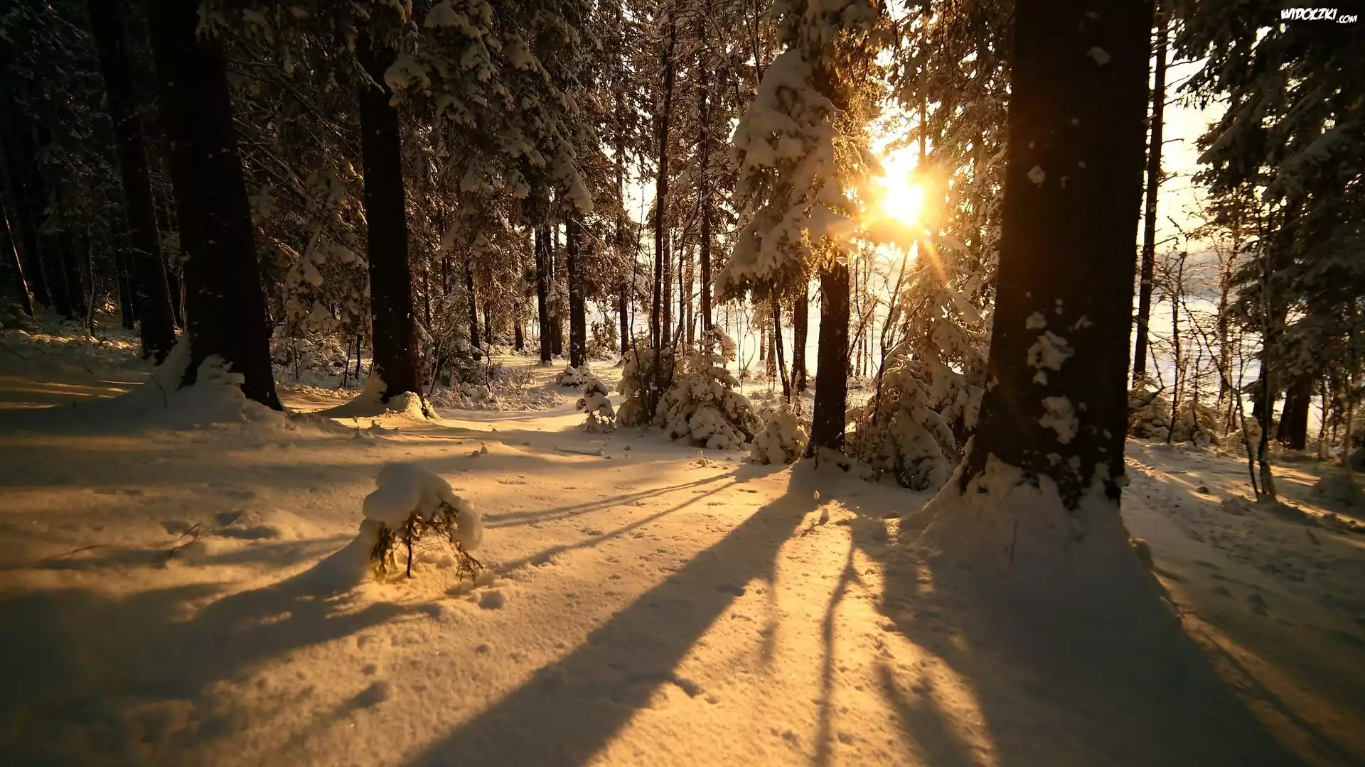 Zdjęcia, Zima, Las, Ośnieżone, Drzewa, Słońce, Cień
