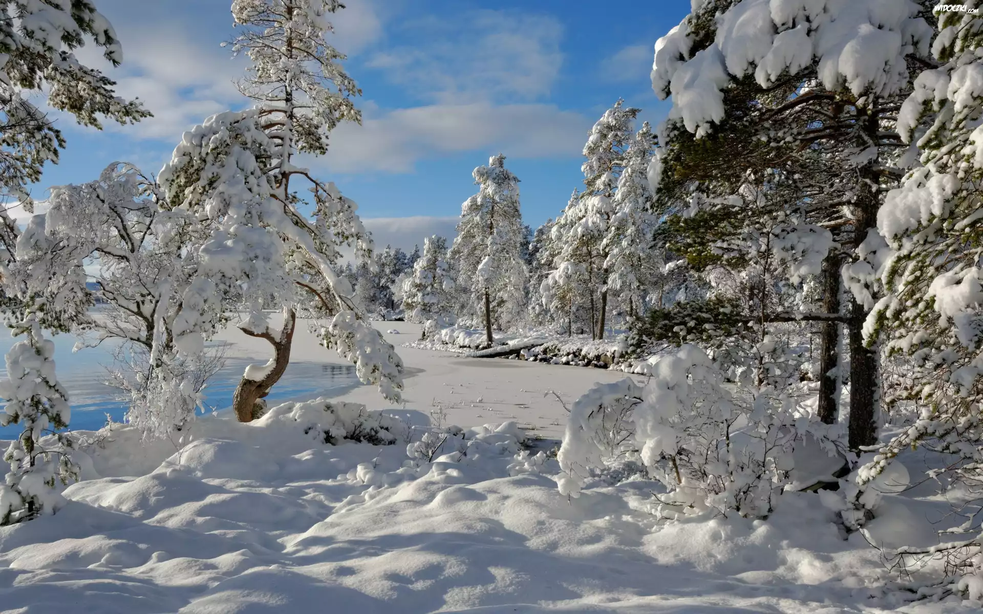 Zdjęcia, Zima, Rzeka, Las, Słoneczny, Dzień