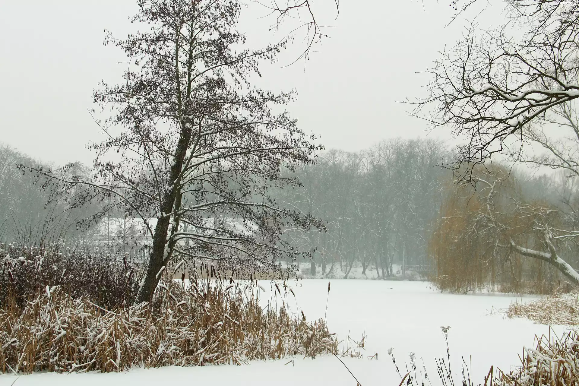 Zdjęcia, Zima, Trawy, Drzewa, Park Sołacki, Poznań