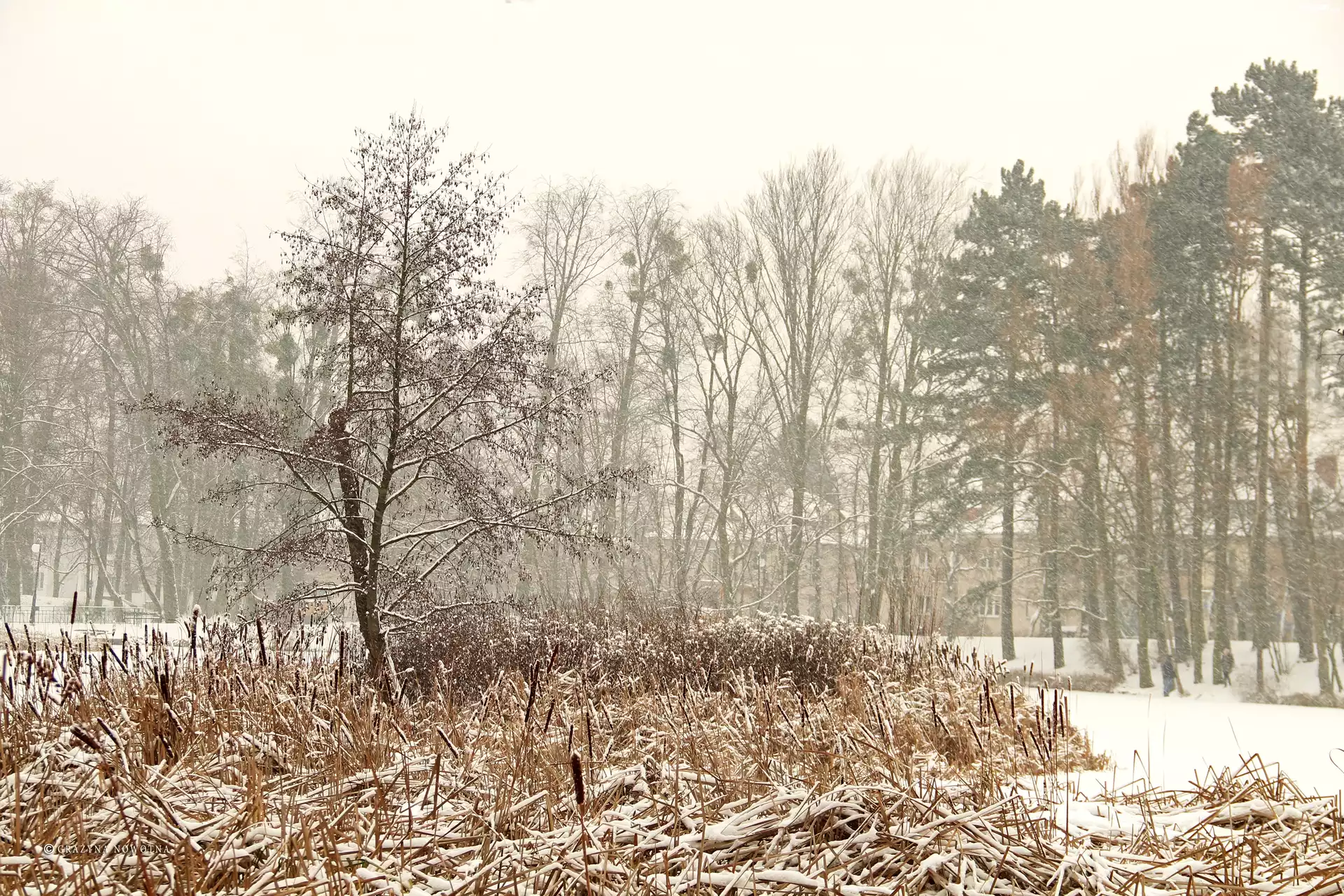 Zdjęcia, Zima, Drzewa, Trawy, Park Sołacki, Poznań