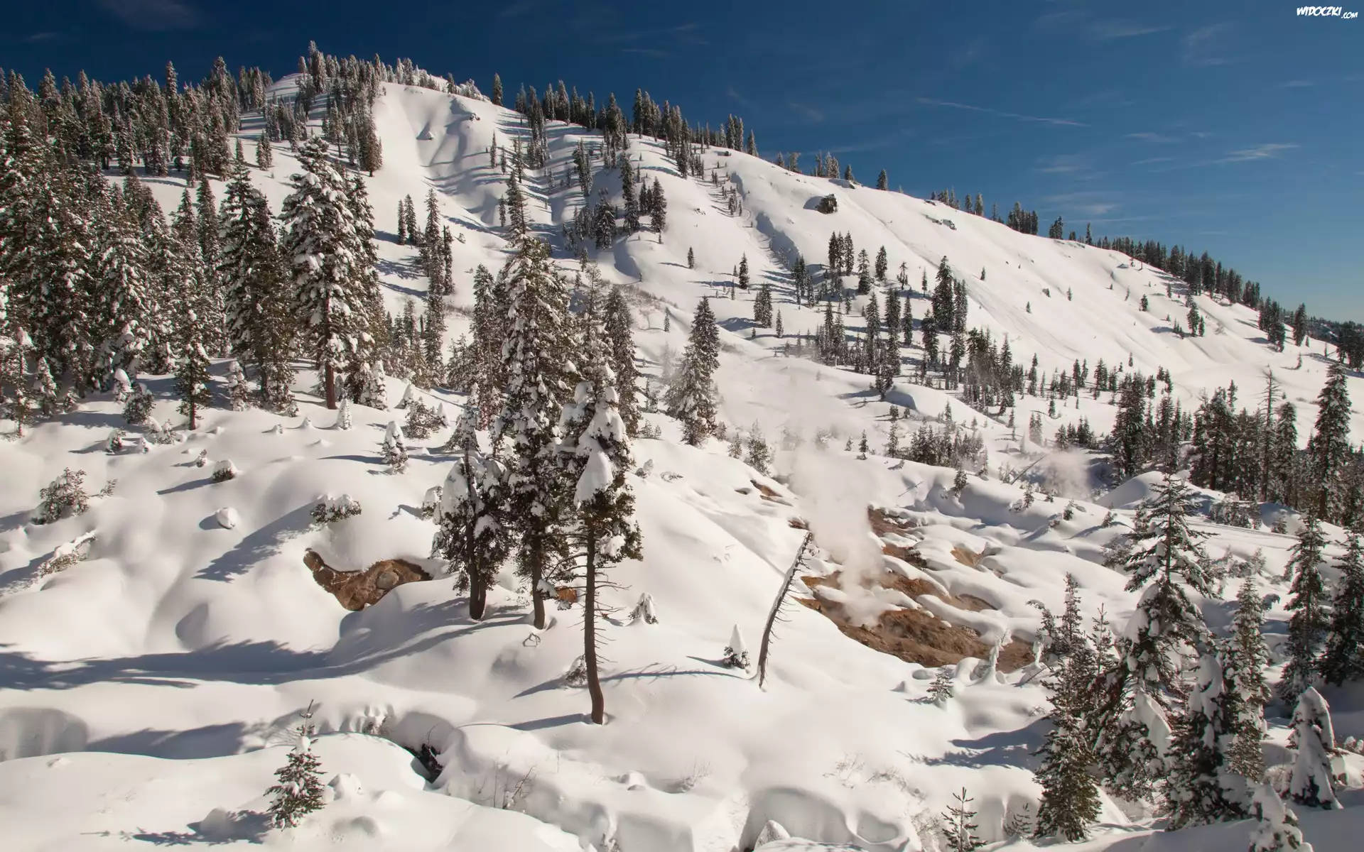 Zdjęcia, Zima, Śnieg, Góry, Stok, Drzewa