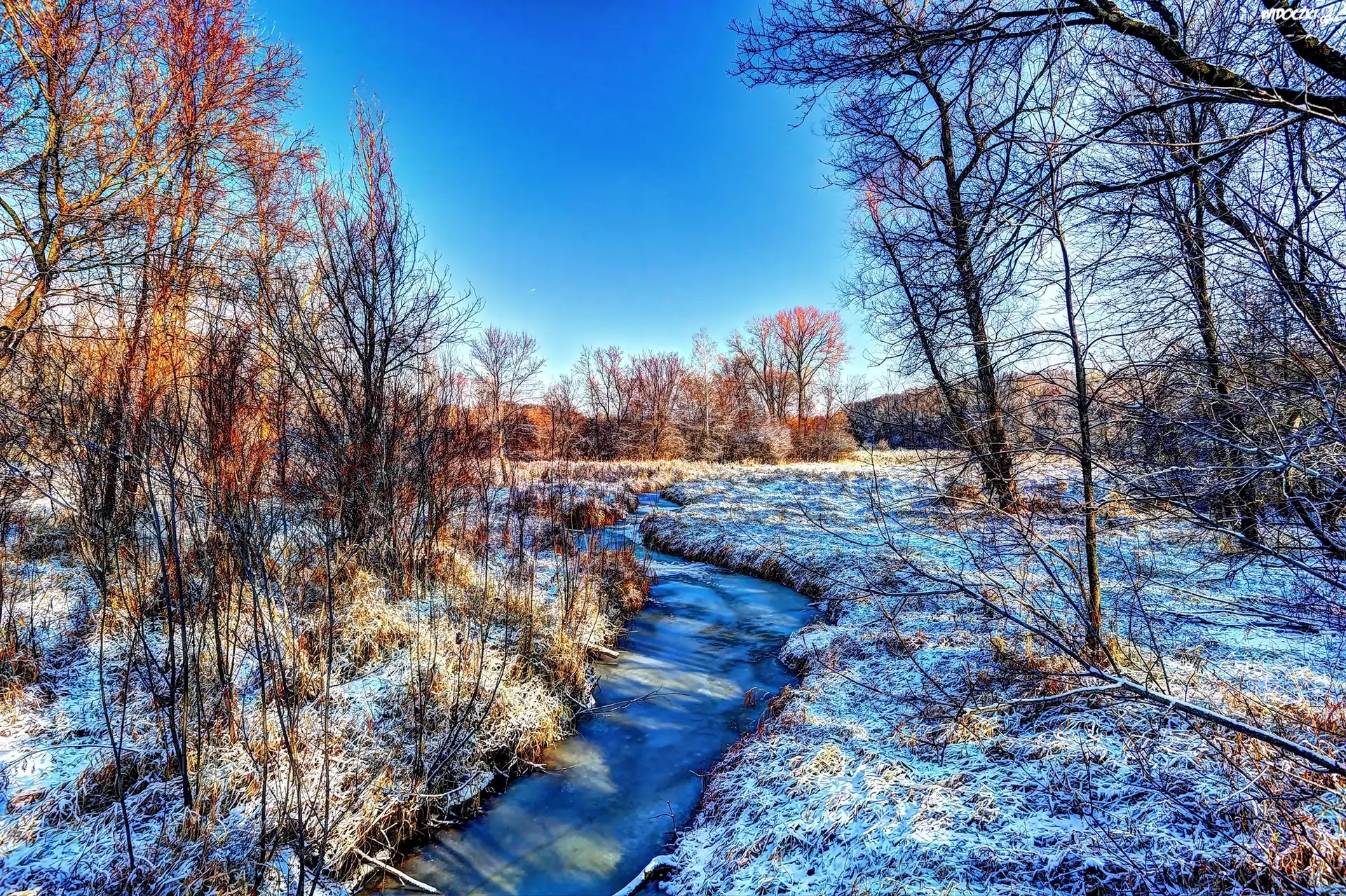 Zdjęcia, Zima, Las, Rzeczka, Strumyk, Polana
