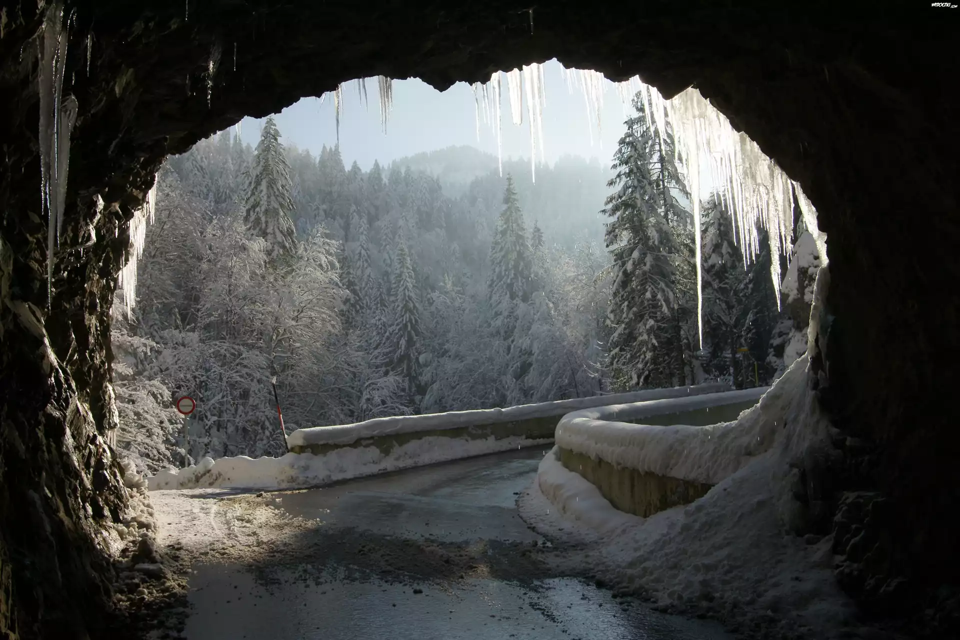 Zdj臋cia, Zima, Droga, Tunel, Sople