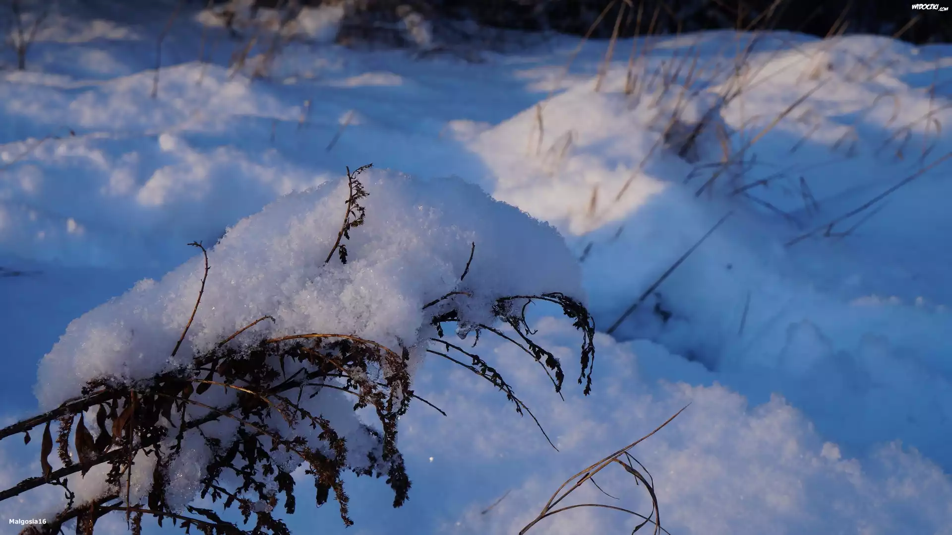 Zdjęcia, Zima, Śnieg, Uschnięta, Roślina