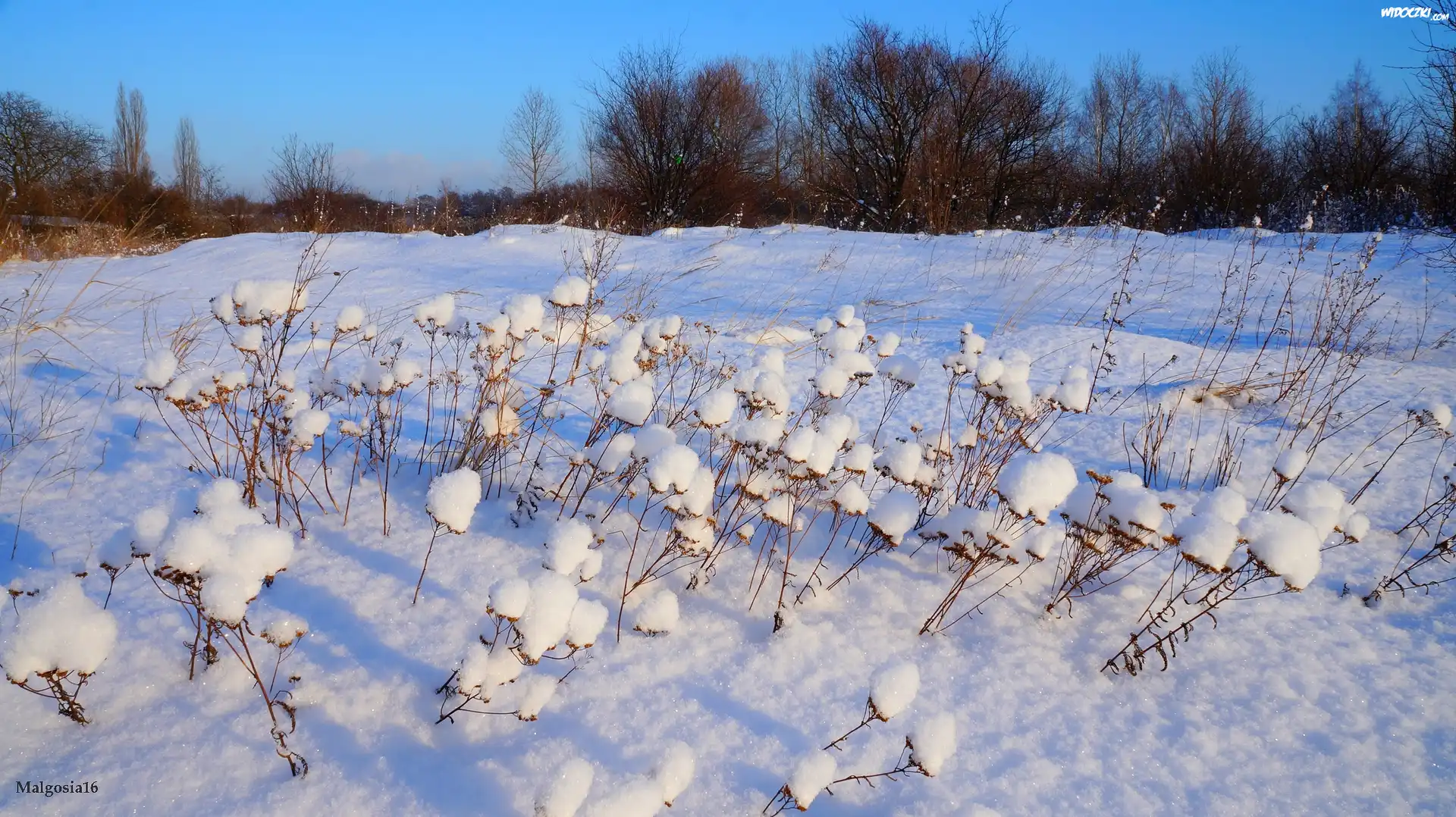 Zdjęcia, Zima, Śnieg, Uschnięte, Rośliny