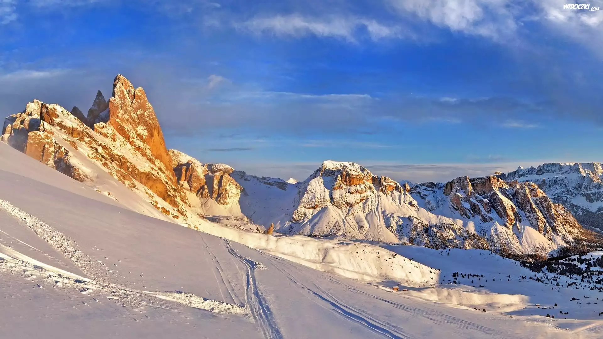 Zdjęcia, Zima, Włochy, Dolomity, Dolina, Val Gardena