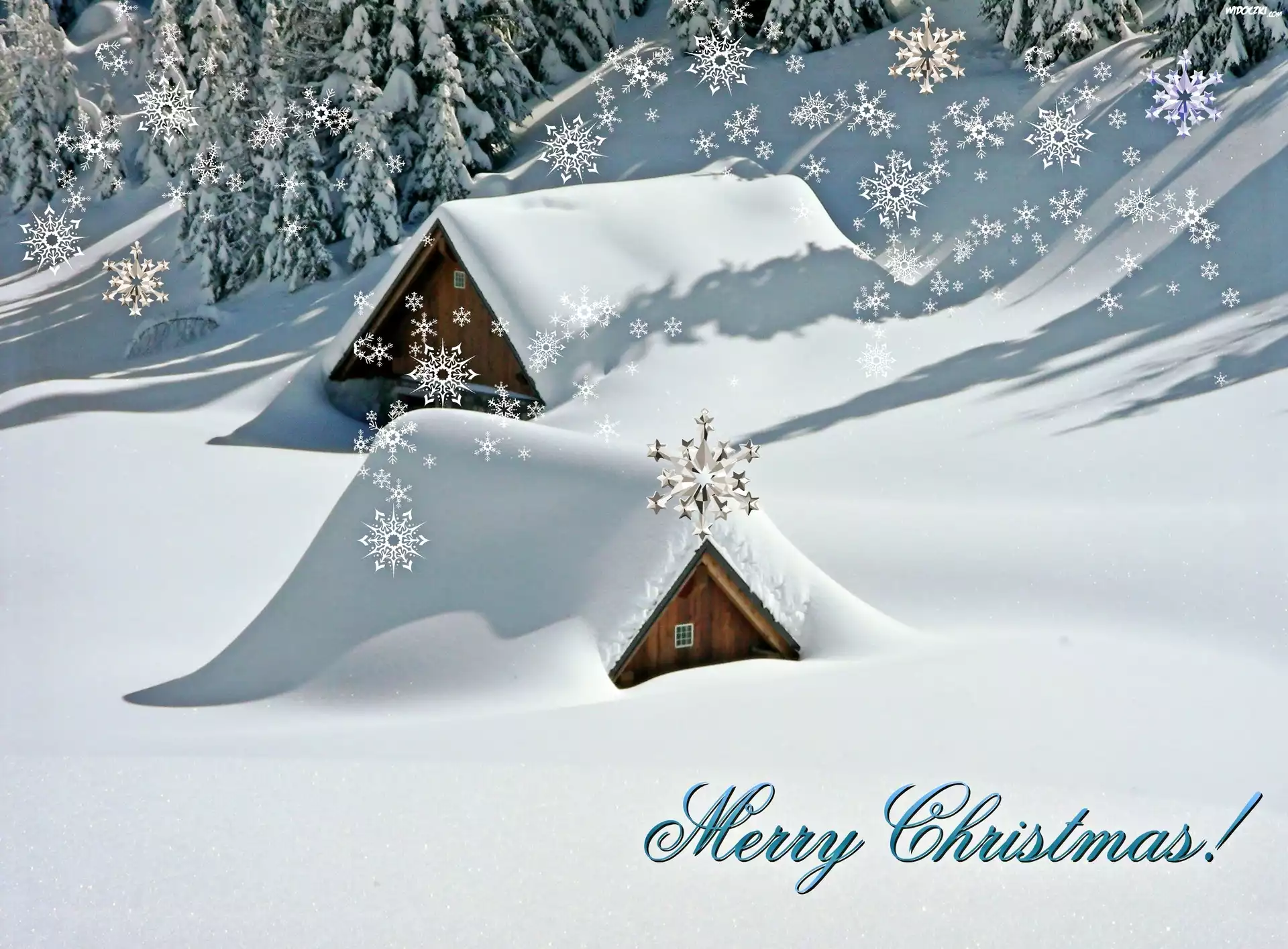 Zdjęcia, Zima, Domki, Gwiazdki, Świąteczne, Życzenia