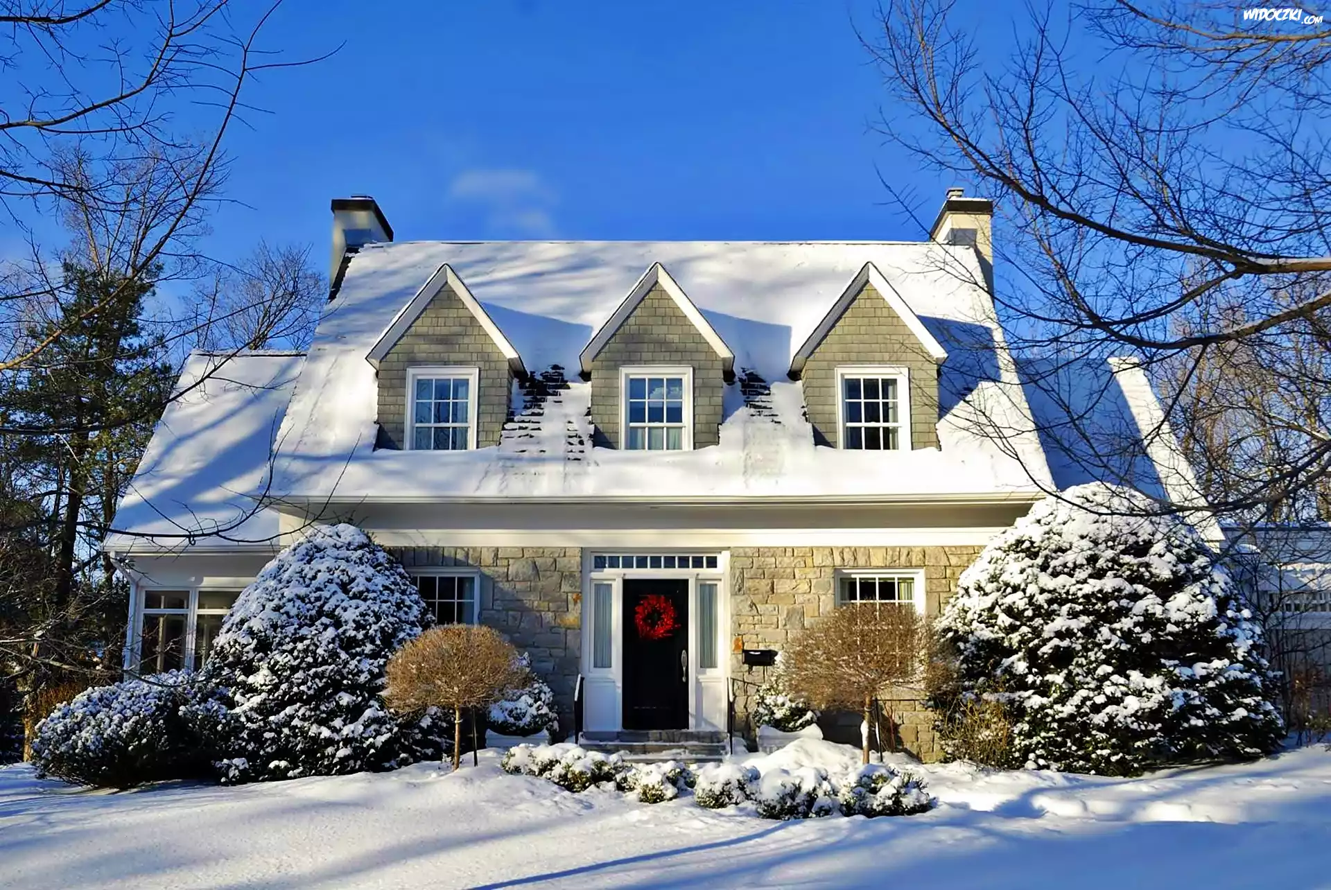 Zdjęcia, Zima, Dom, Ogród, Światło, Cień