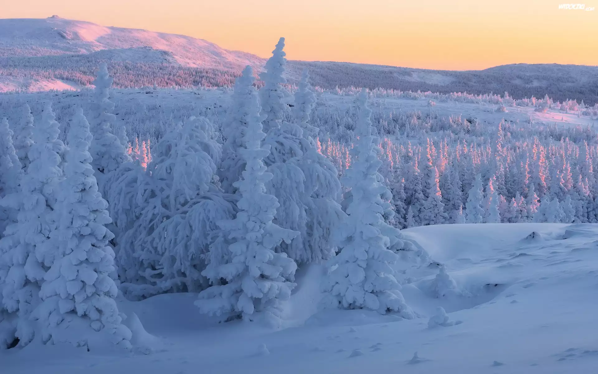 Zdjęcia, Zima, Śnieg, Świerki, Ośnieżone