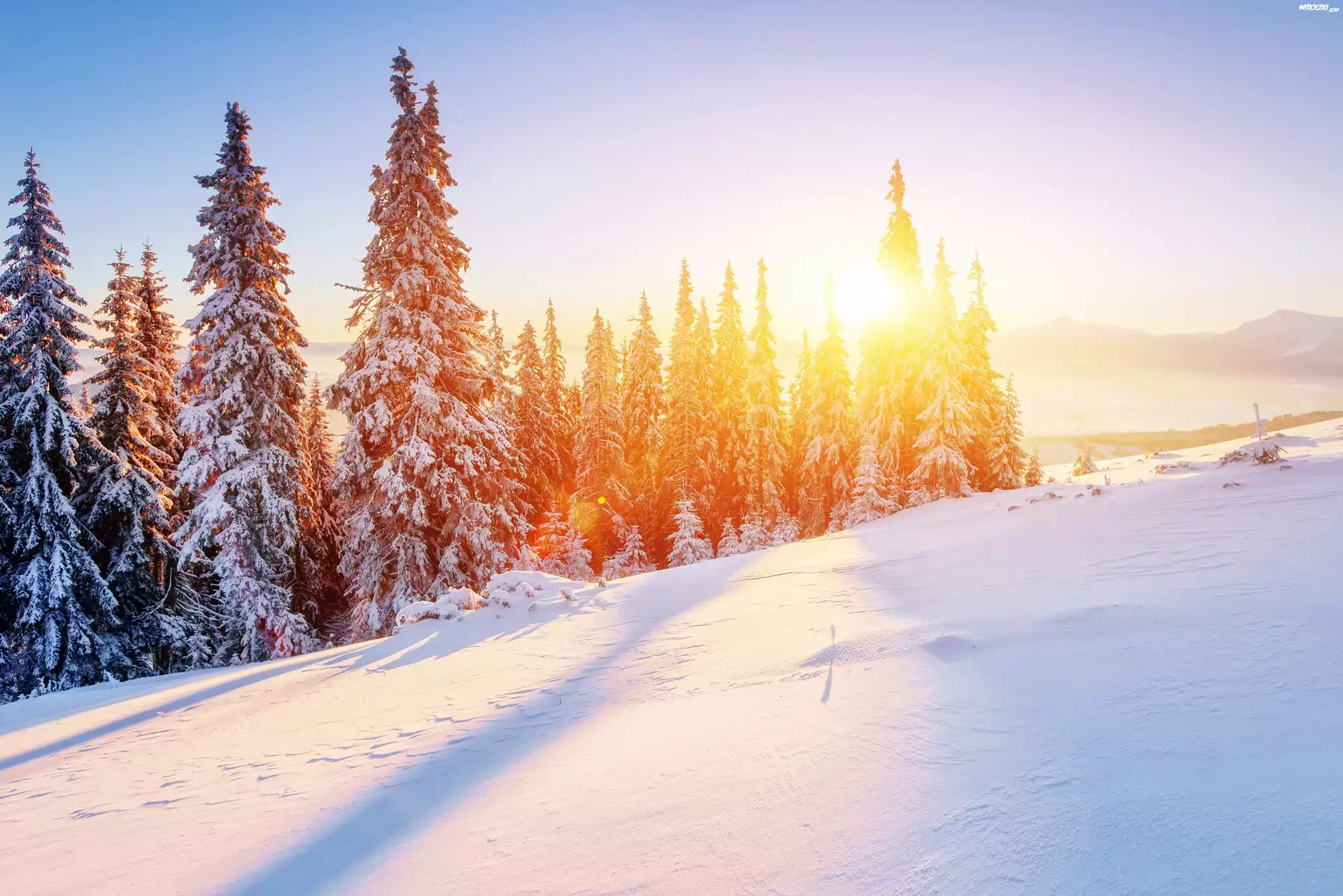 Zima, Góry, Las, Świerkowy, Świt