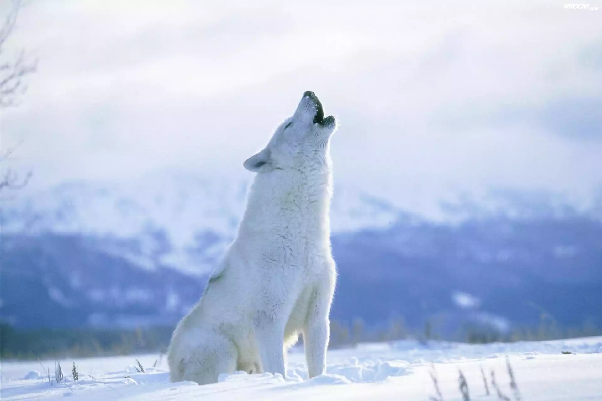 Zdjęcia, Zima, Biały, Wilk, Wycie