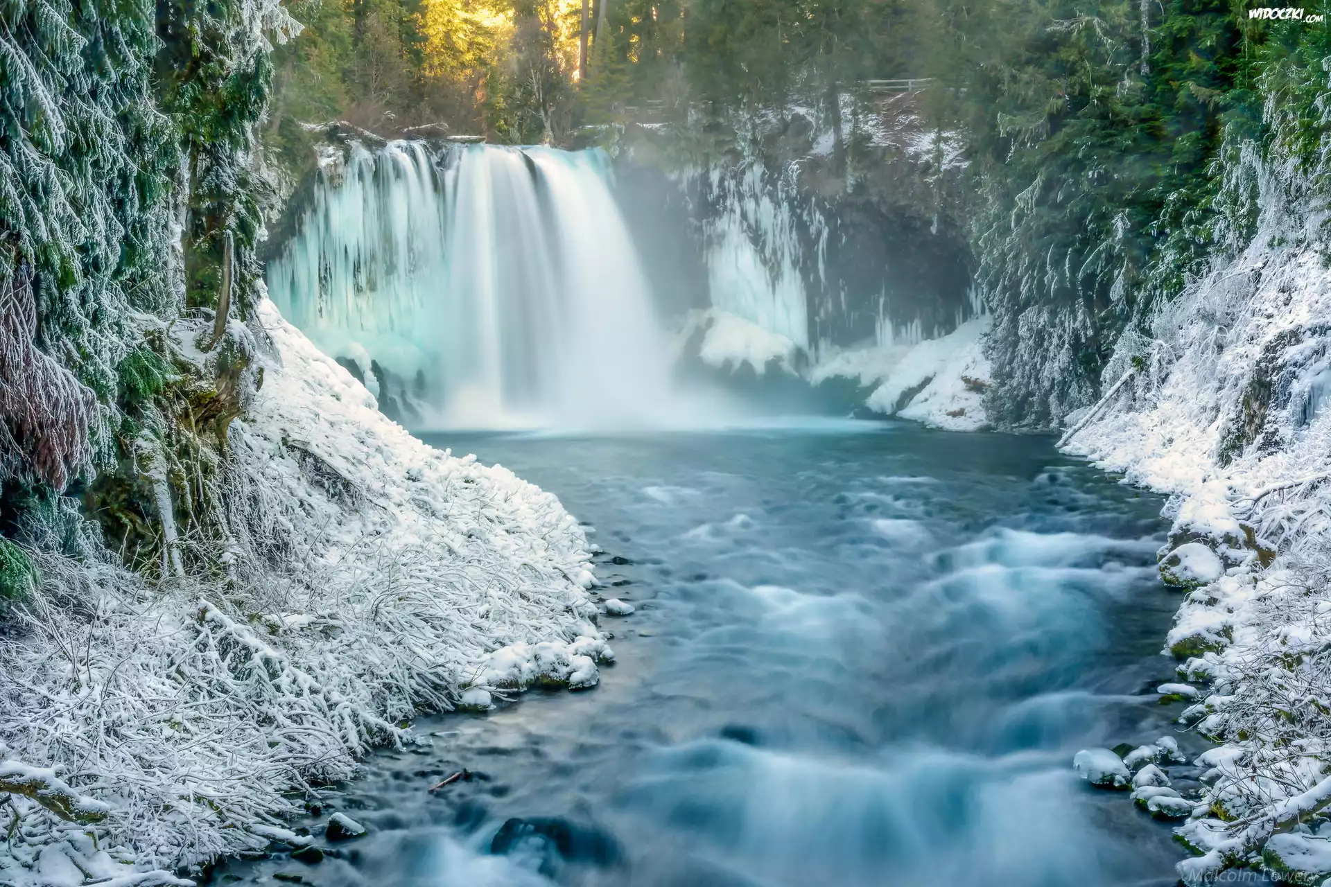 Zima, Rzeka, Wodospad, Opary