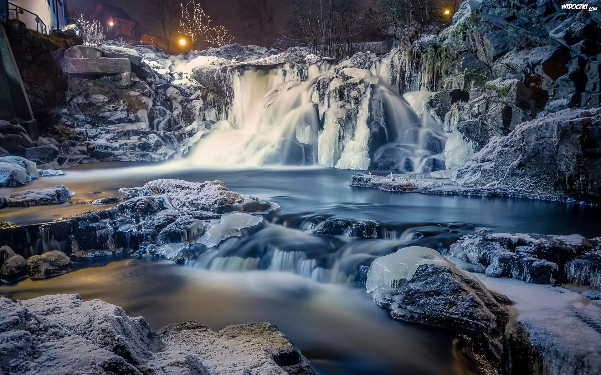 Zdjęcia, Zima, Skały, Wodospad, Rzeka