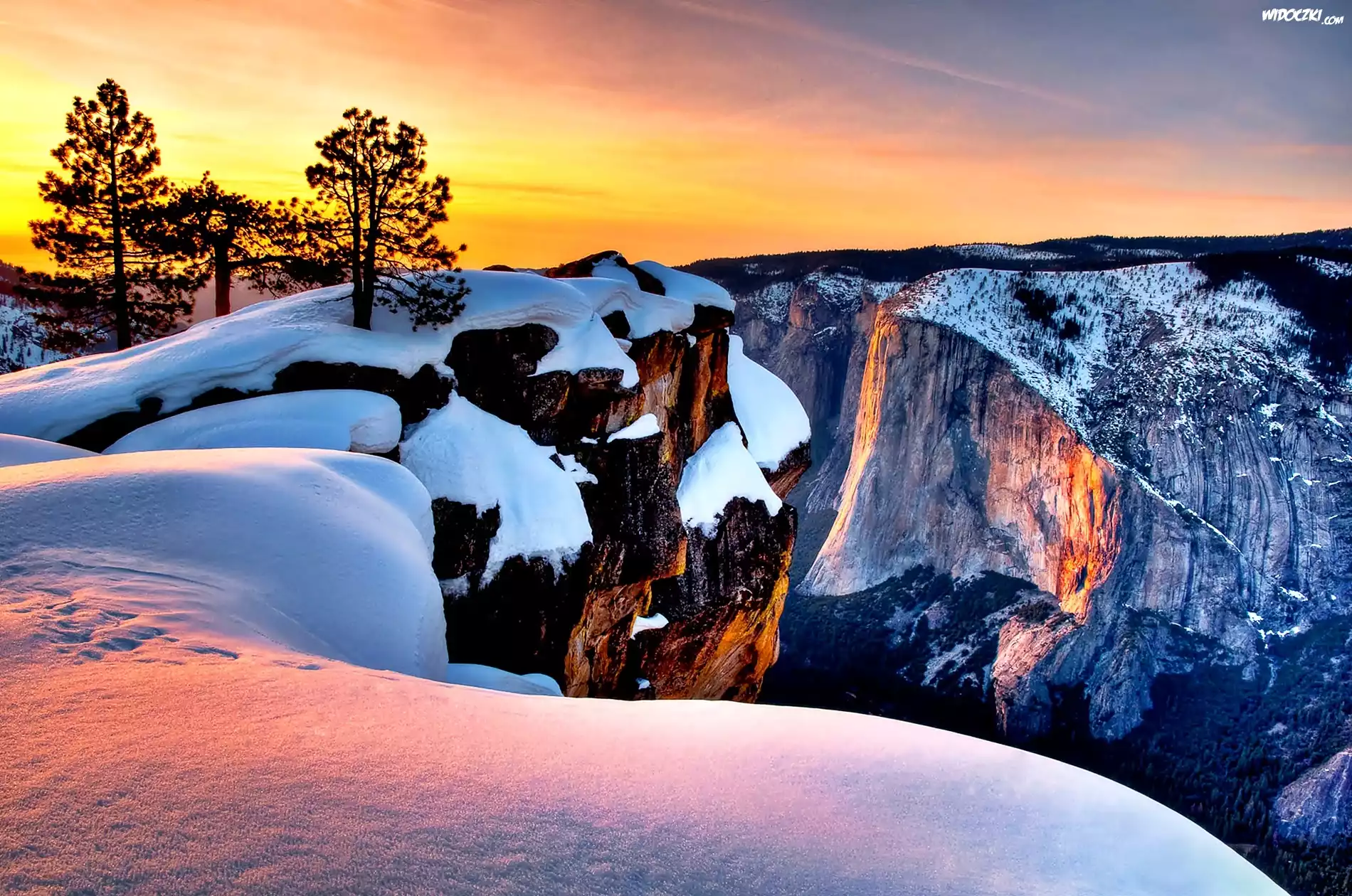 Zdjęcia, Zima, Góry, Drzewa, Wschód, Słońca