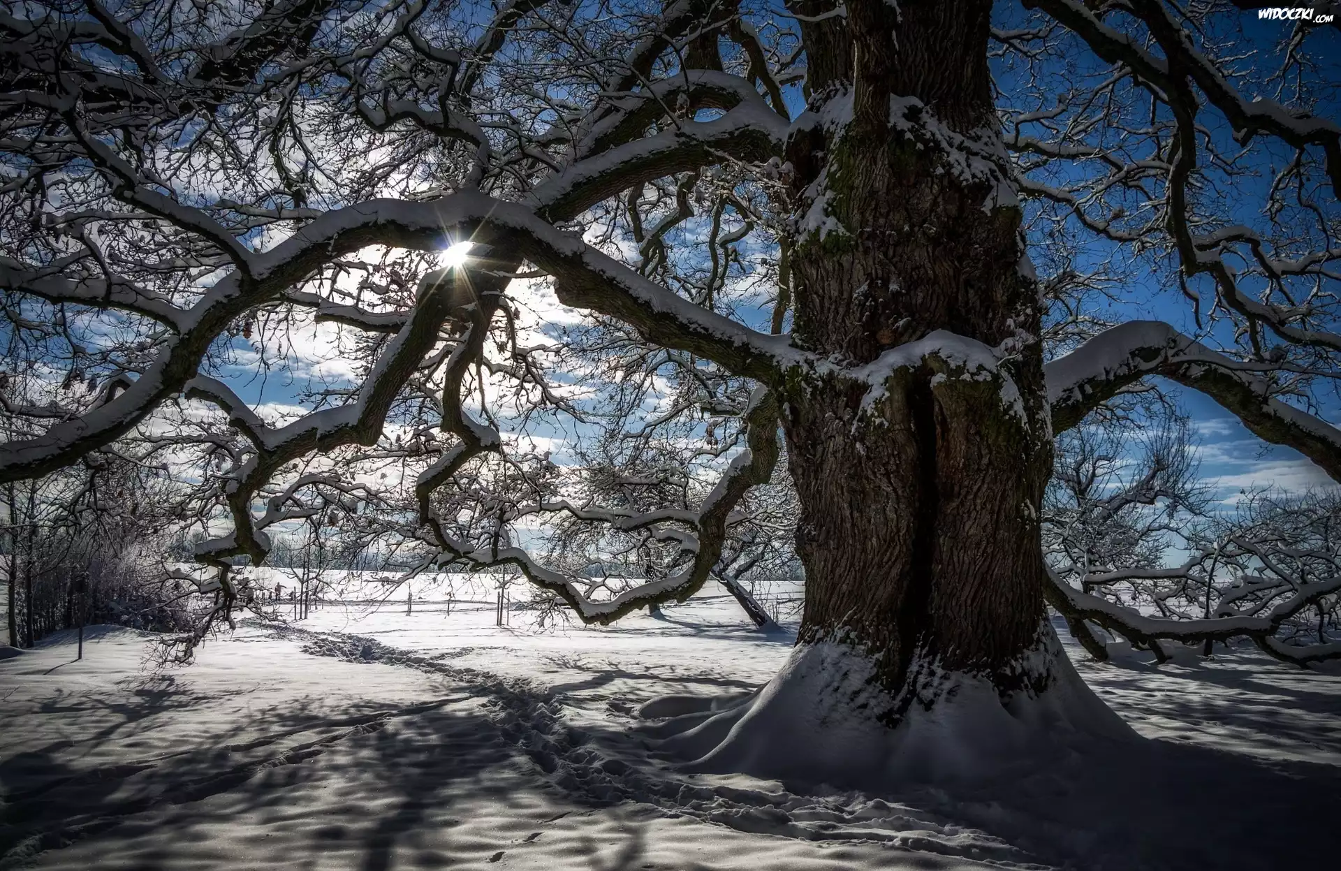 Zdjęcia, Zima, Drzewo, Wschód słońca