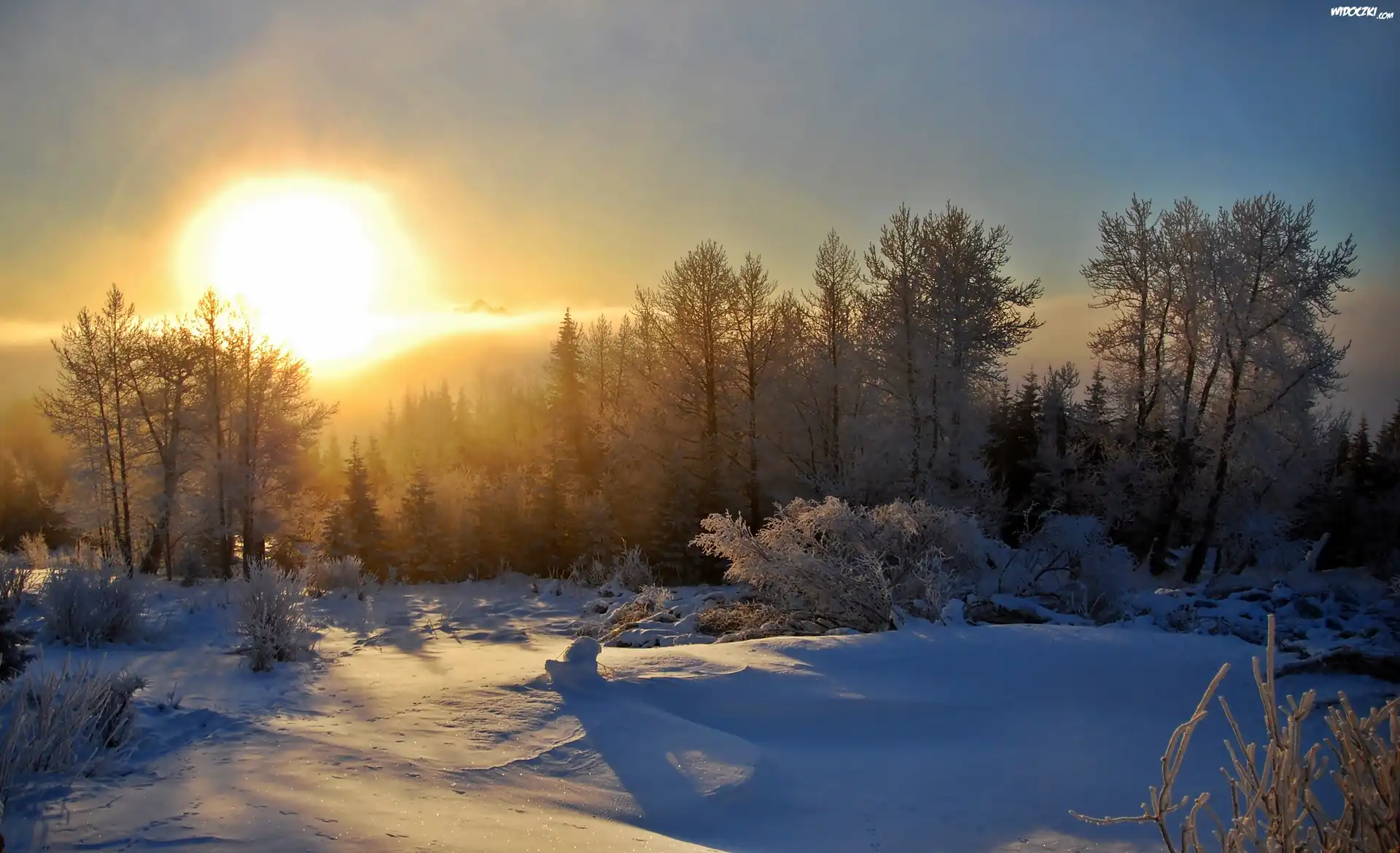 Zima, Las, Wschód, Słońca
