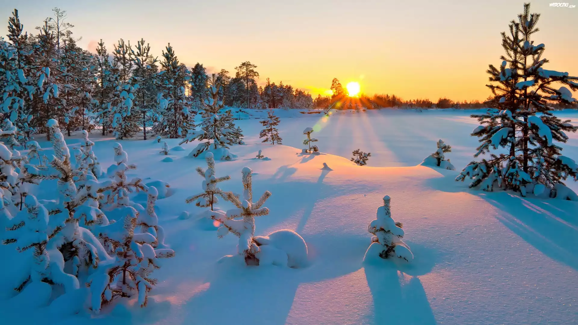 Zdjęcia, Zima, Świerki, Wschód słońca