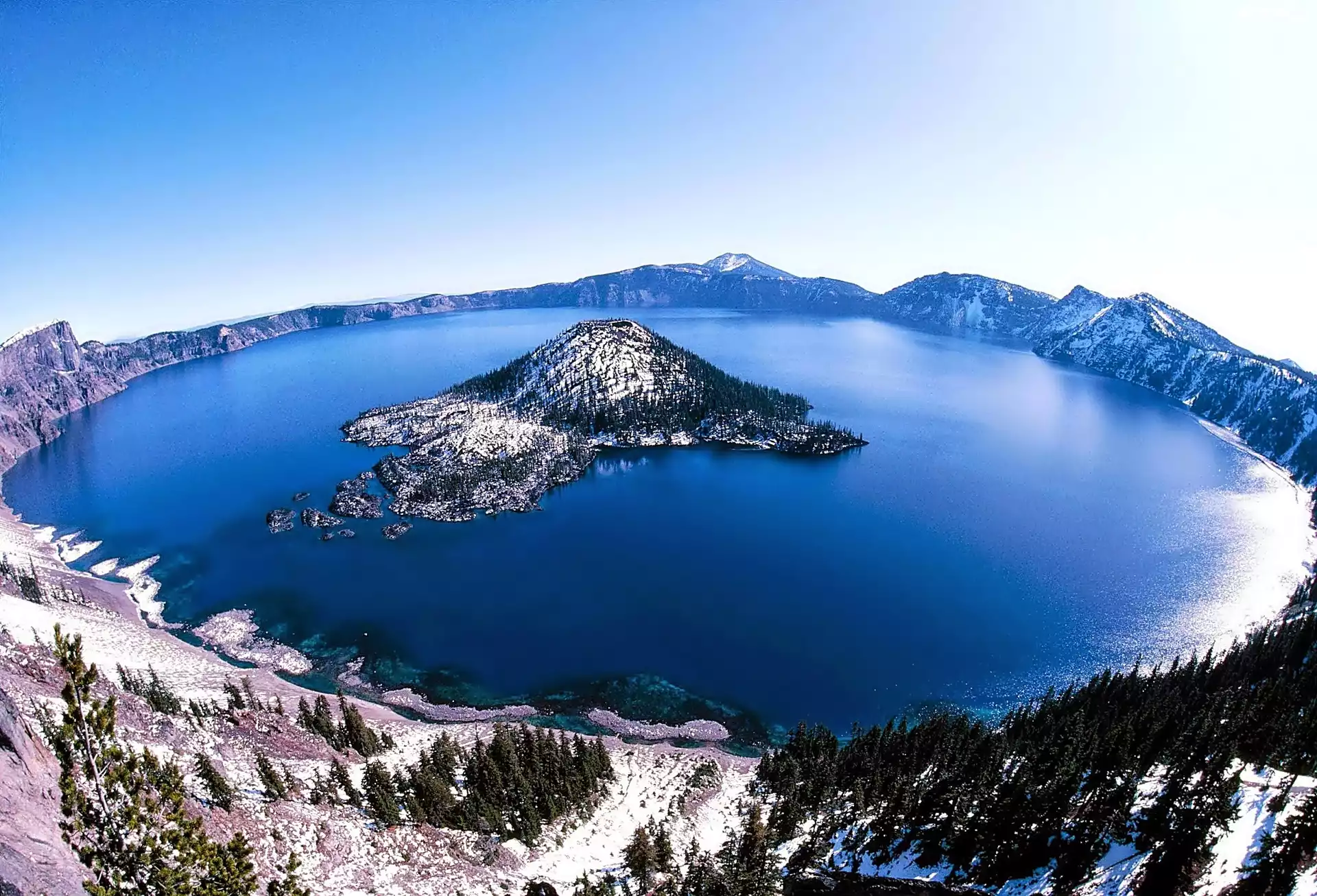 Zdjęcia, Zima, Jezioro, Wulkaniczne, Las