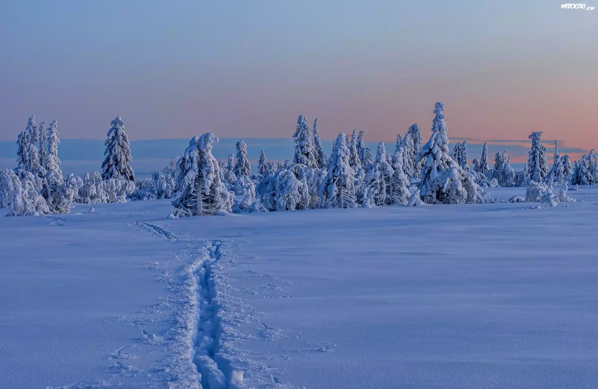 Zima, Ośnieżone, Drzewa, Śnieg, Wydeptana,Ścieżka