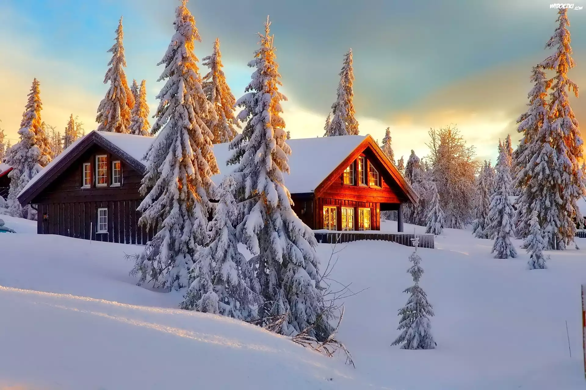 Zima, Dom, Zachód Słońca