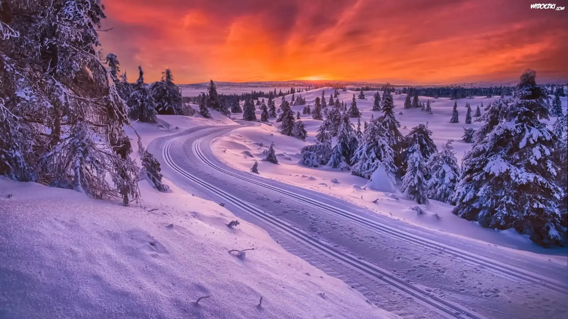 Zdjęcia, Zima, Droga, Zachód, Słońca