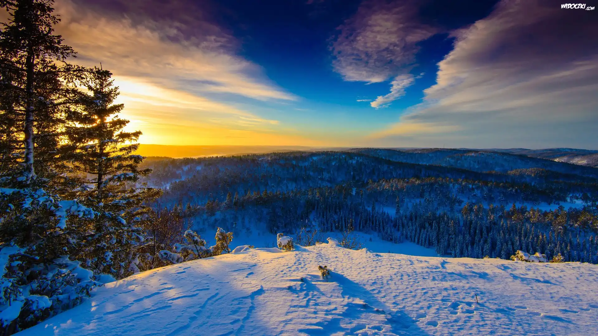 Zdjęcia, Zima, Wzgórza, Zachód słońca