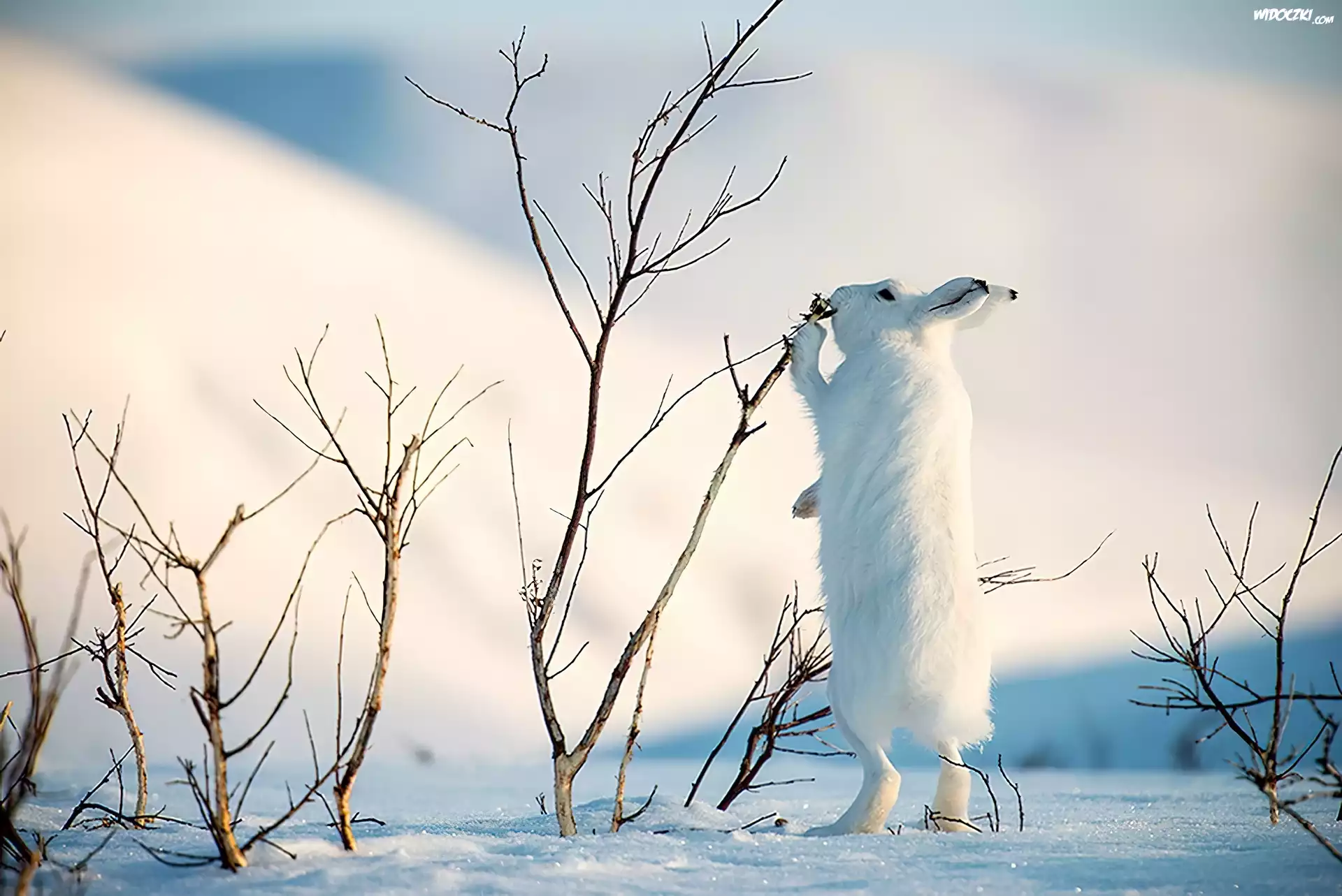 Zdjęcia, Zima, Śnieg, Biały, Zając, Drzewka