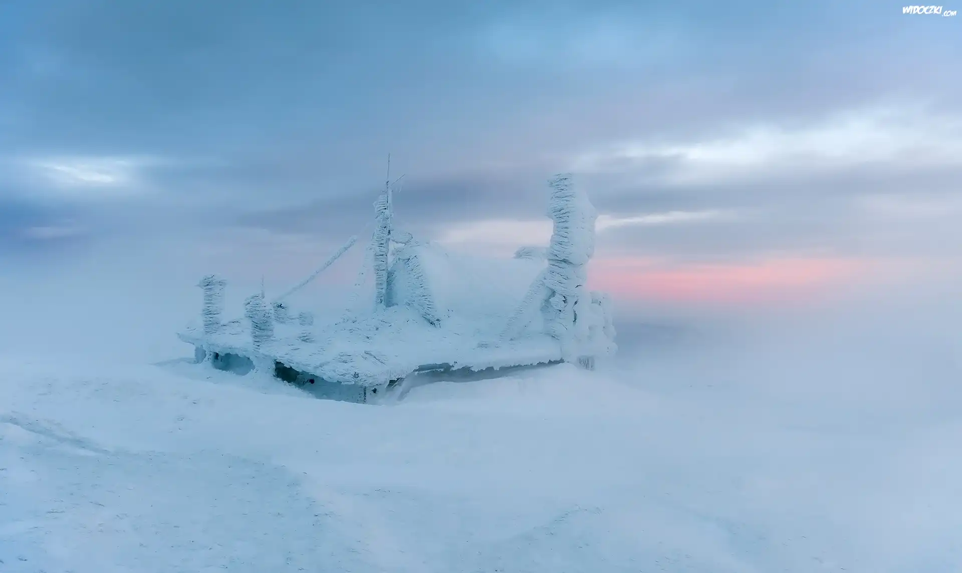 Zdjęcia, Zima, Śnieg, Mgła, Zaśnieżona, Budowla