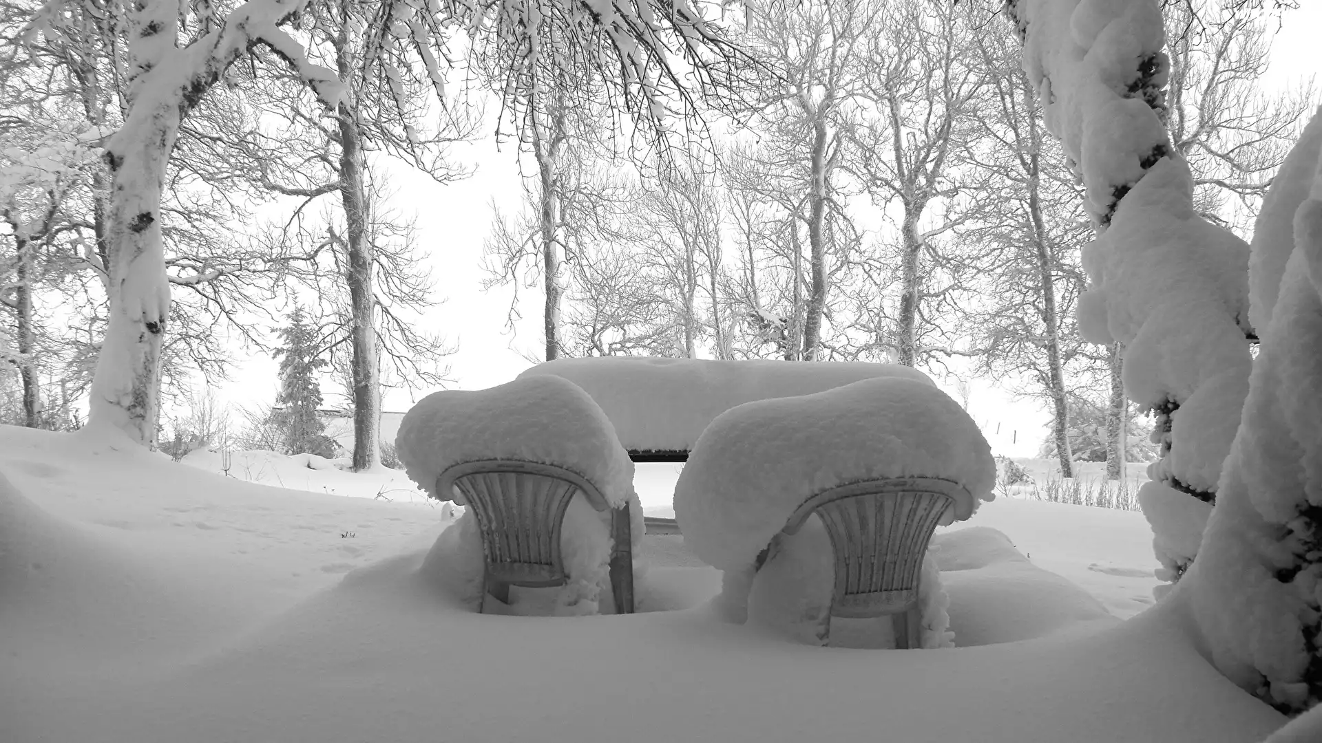 Zima, Śnieg, Drzewa, Zaśnieżone, Krzesła