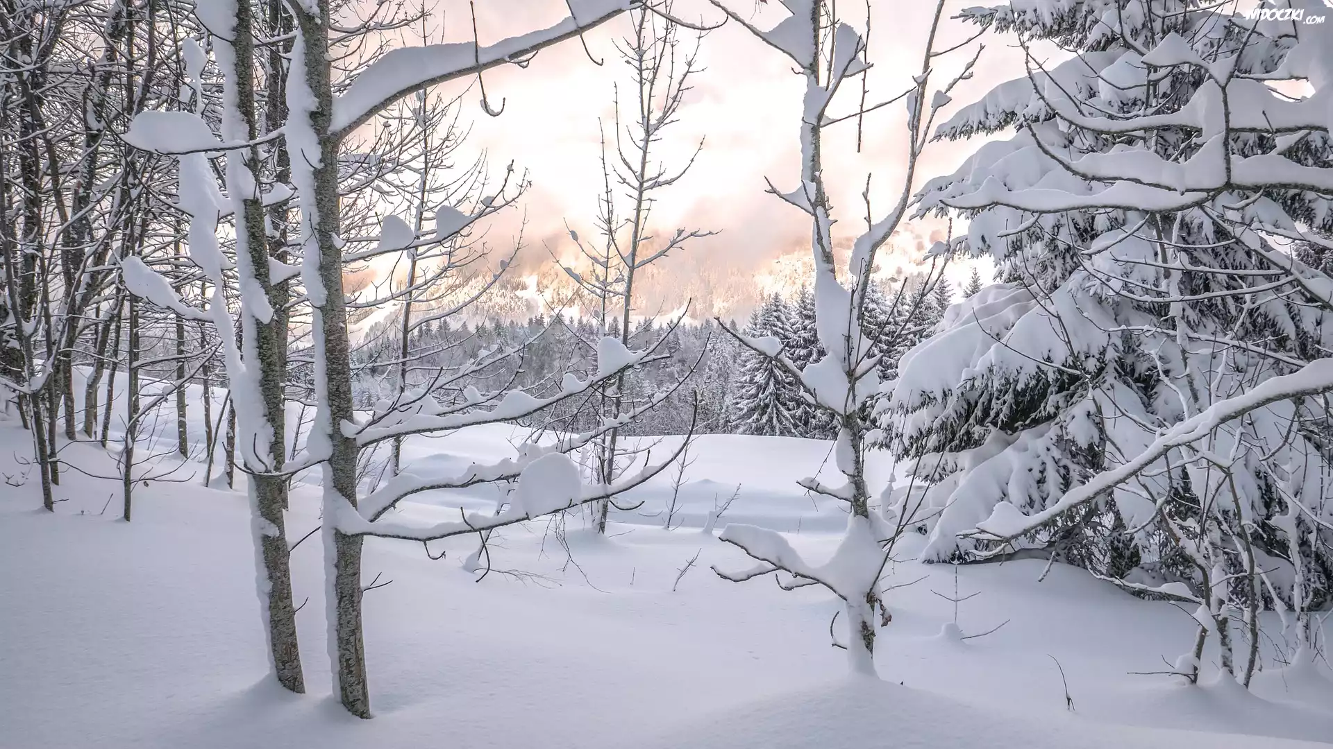 Zdjęcia, Zima, Las, Zaśnieżone, Drzewa