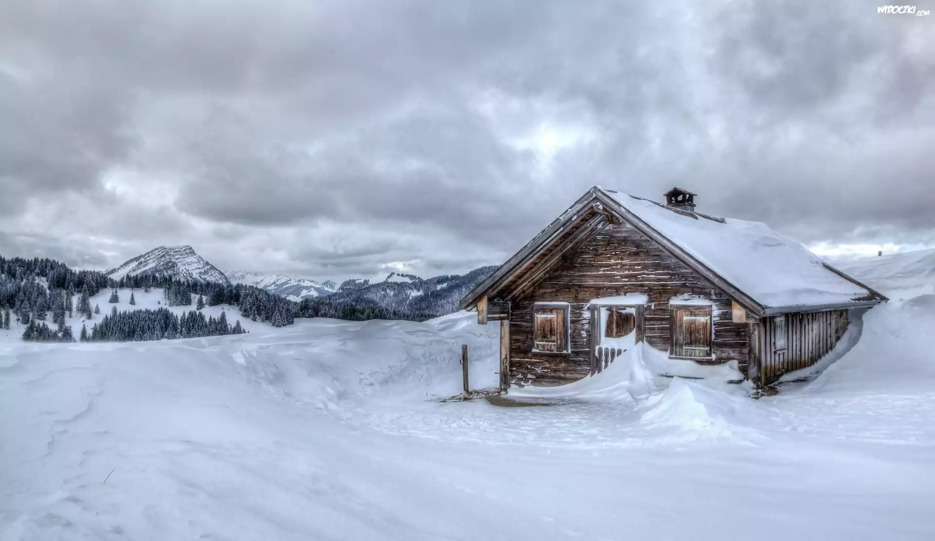 Zdjęcia, Zima, Góry, Zaśnieżony, Dom