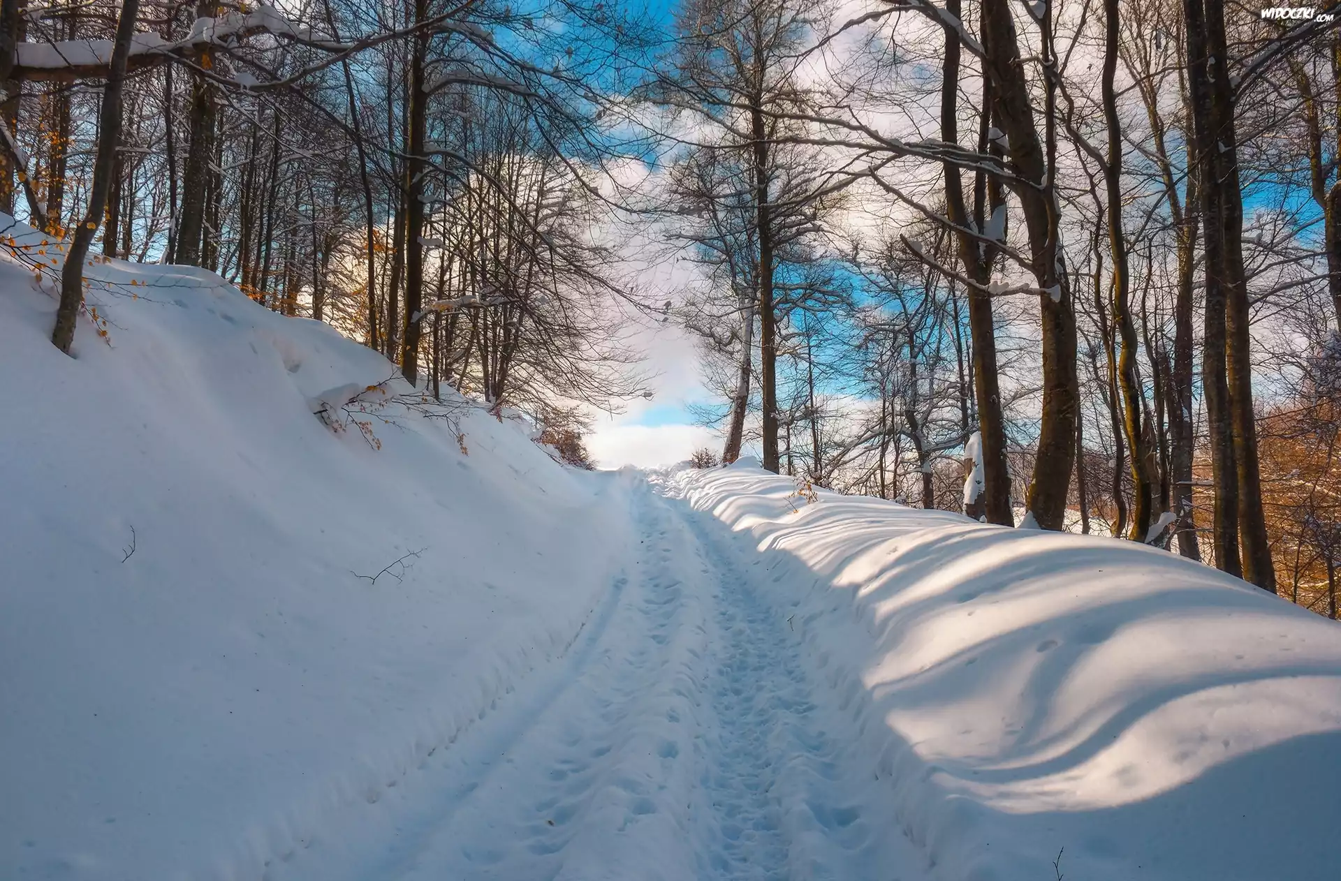 Zdjęcia, Zima, Droga, Zaspy, Drzewa