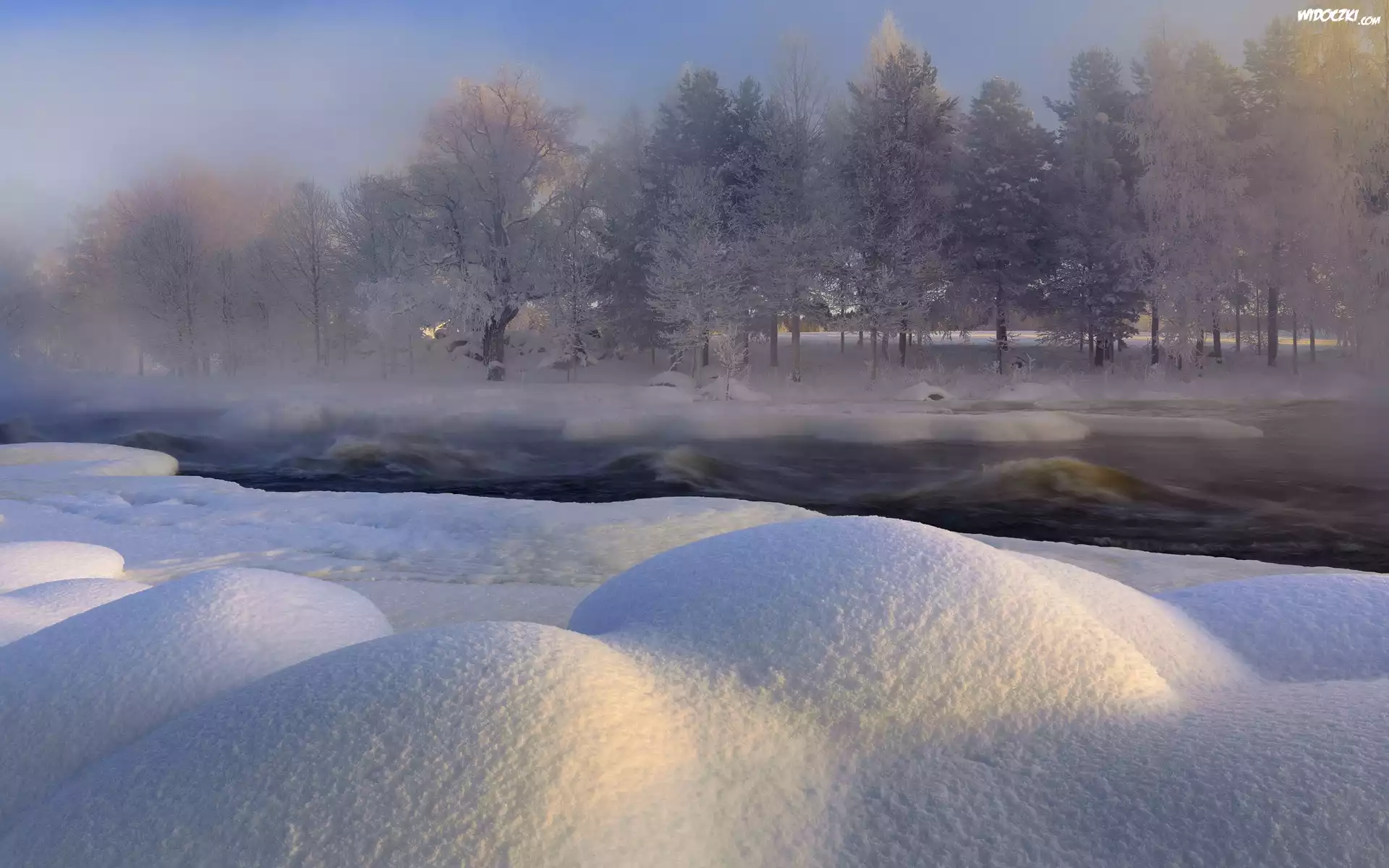 Zdj臋cia, Zima, Rzeka, Zaspy, Szwecja