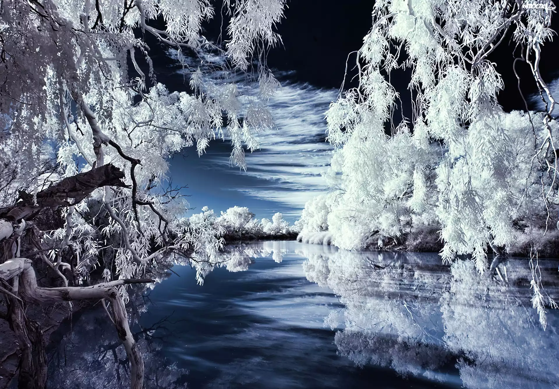 Zdjęcia, Zimowa, Aura, Rzeka, Drzewa
