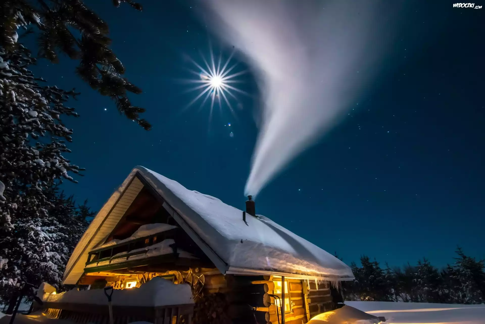 Zdjęcia, Zimowa, Noc, Księżyc, Wiejski, Dom