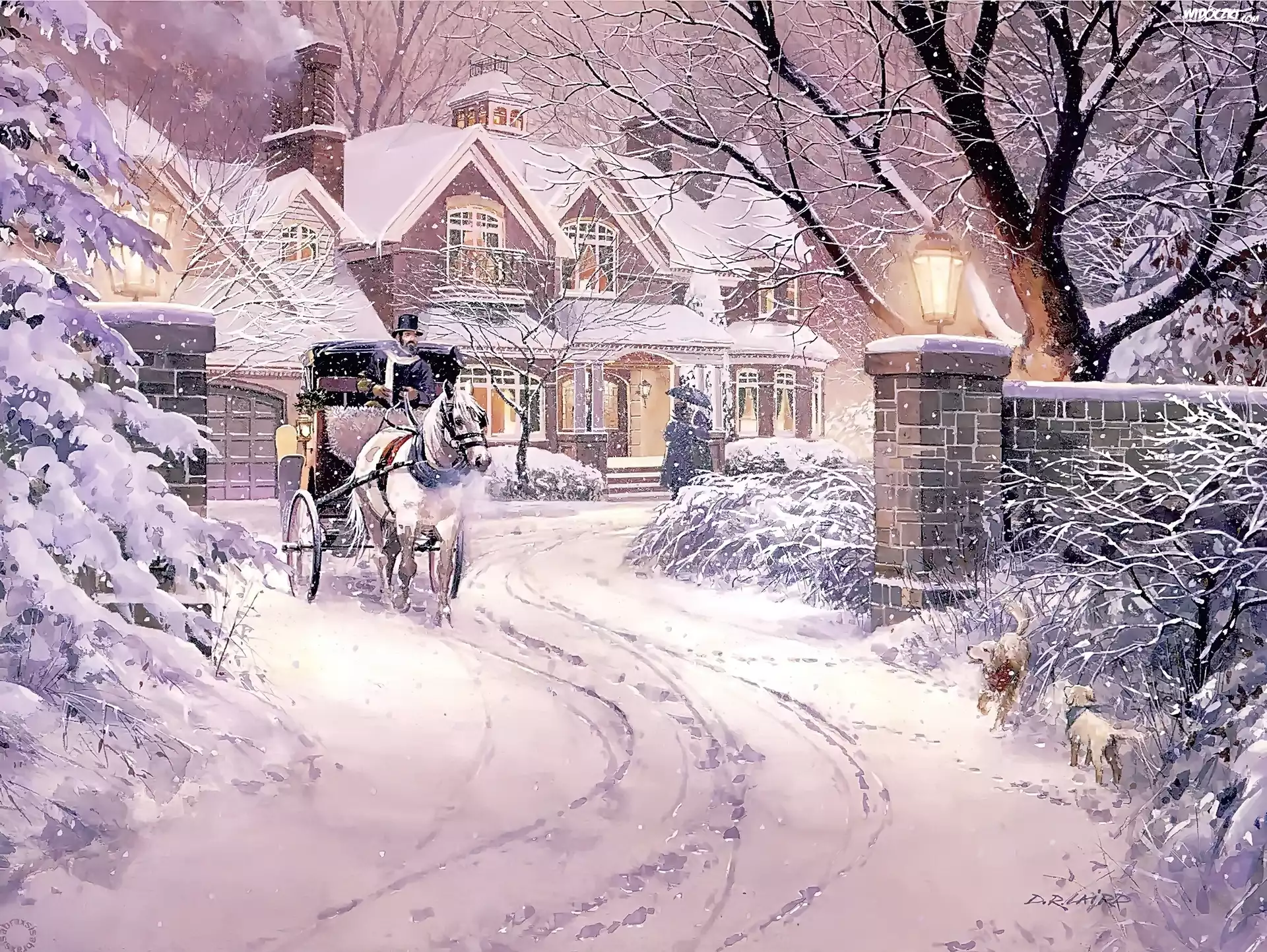 Zdjęcia, Zimowy, Widoczek, Zima, Dom, Powóz