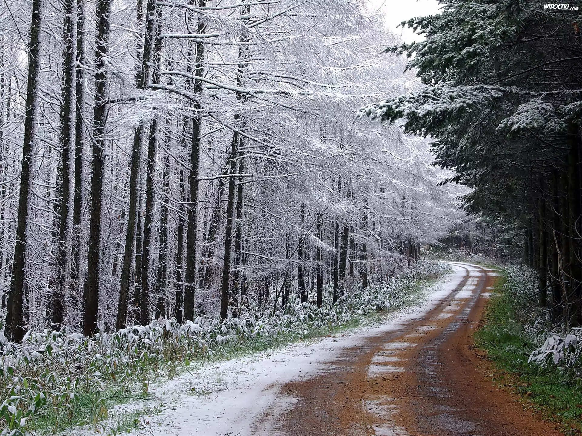 Zdjęcia, Zimowy, Pejzaż, Droga, Przez Las