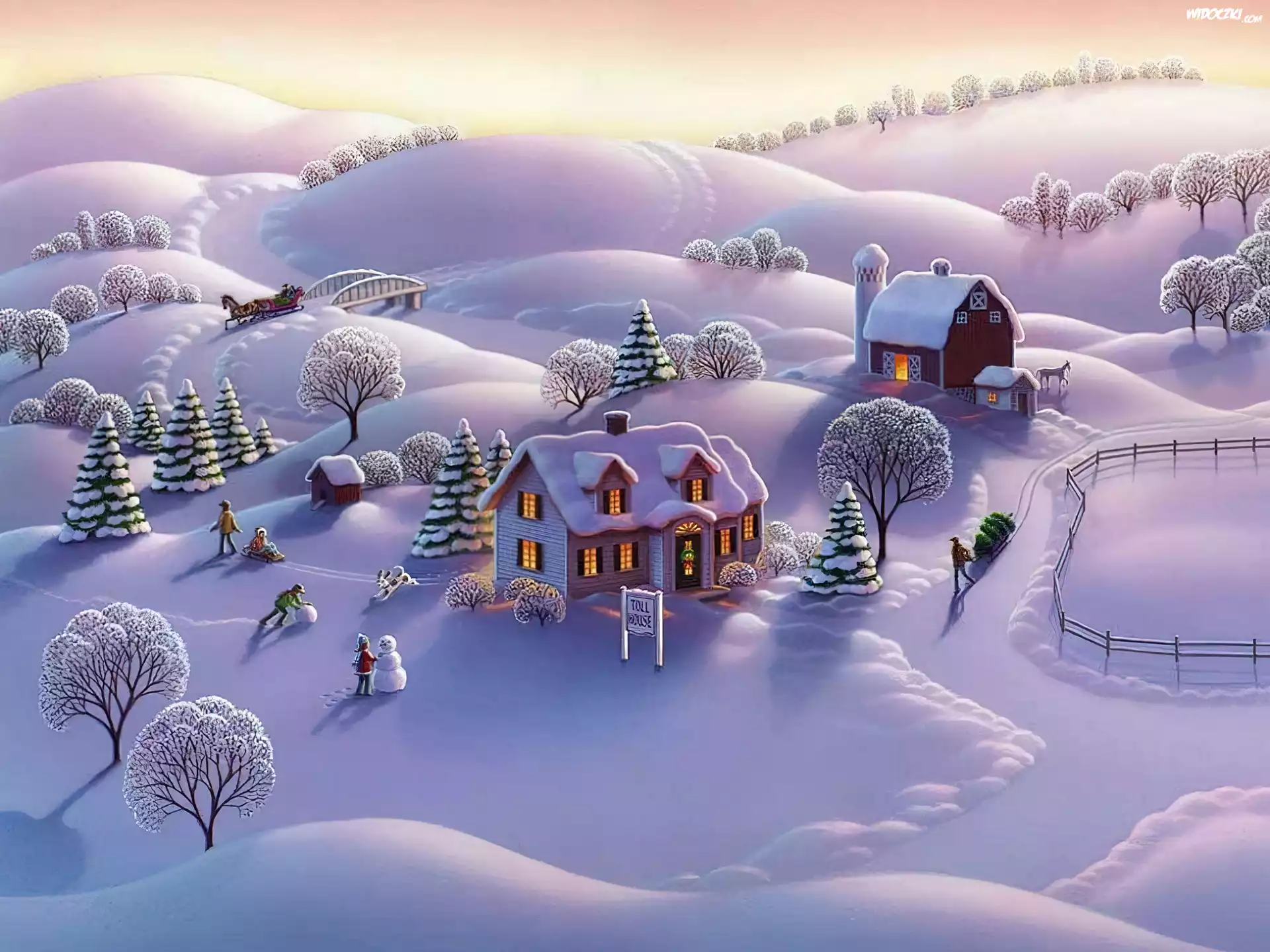 Zdjęcia, Zimowy, Widoczek, Zima, Malarstwo