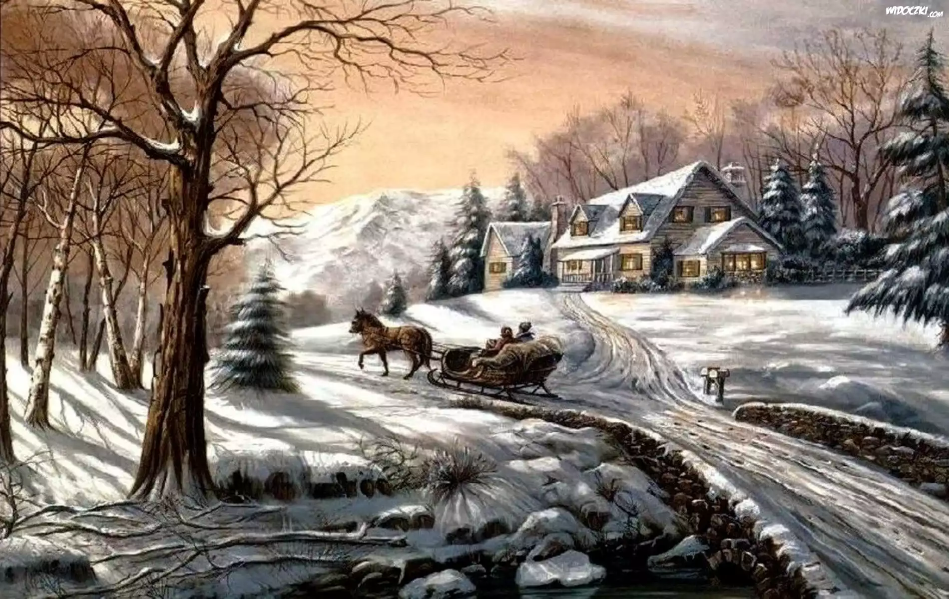 Zdjęcia, Zimowy, Widoczek, Zima, Malarstwo