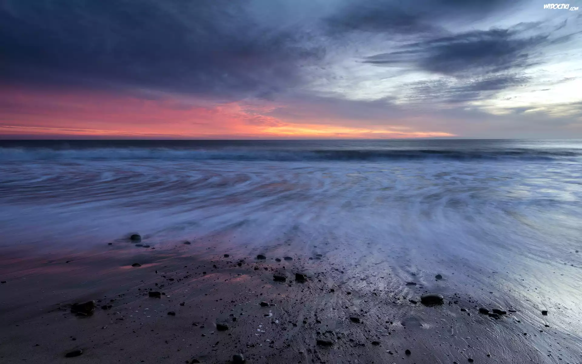 Zdjęcia, Stany Zjednoczone, Kalifornia, Malibu, Plaża, Morze, Chmury, Fale