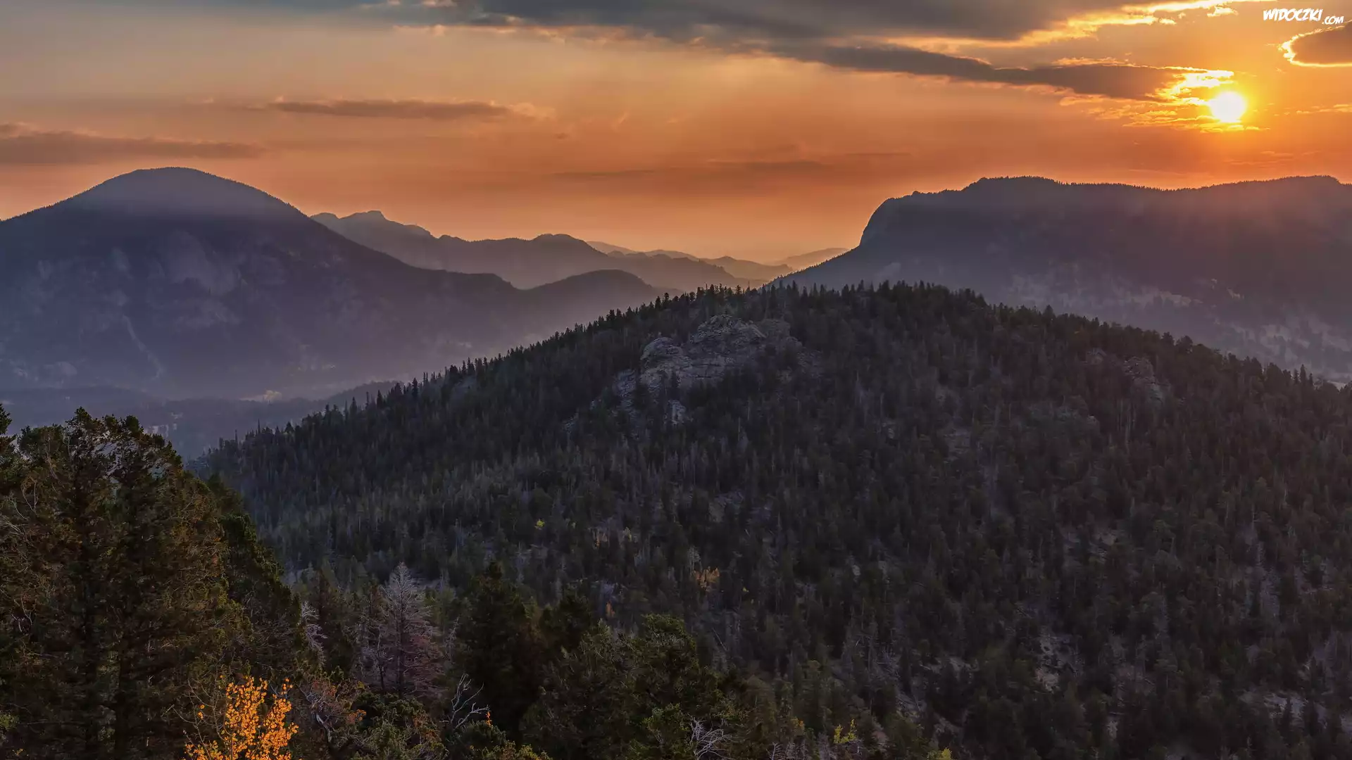 Zdjęcia, Park Narodowy Gór Skalistych, Góry, Wschód słońca, Kolorado, Stany Zjednoczone