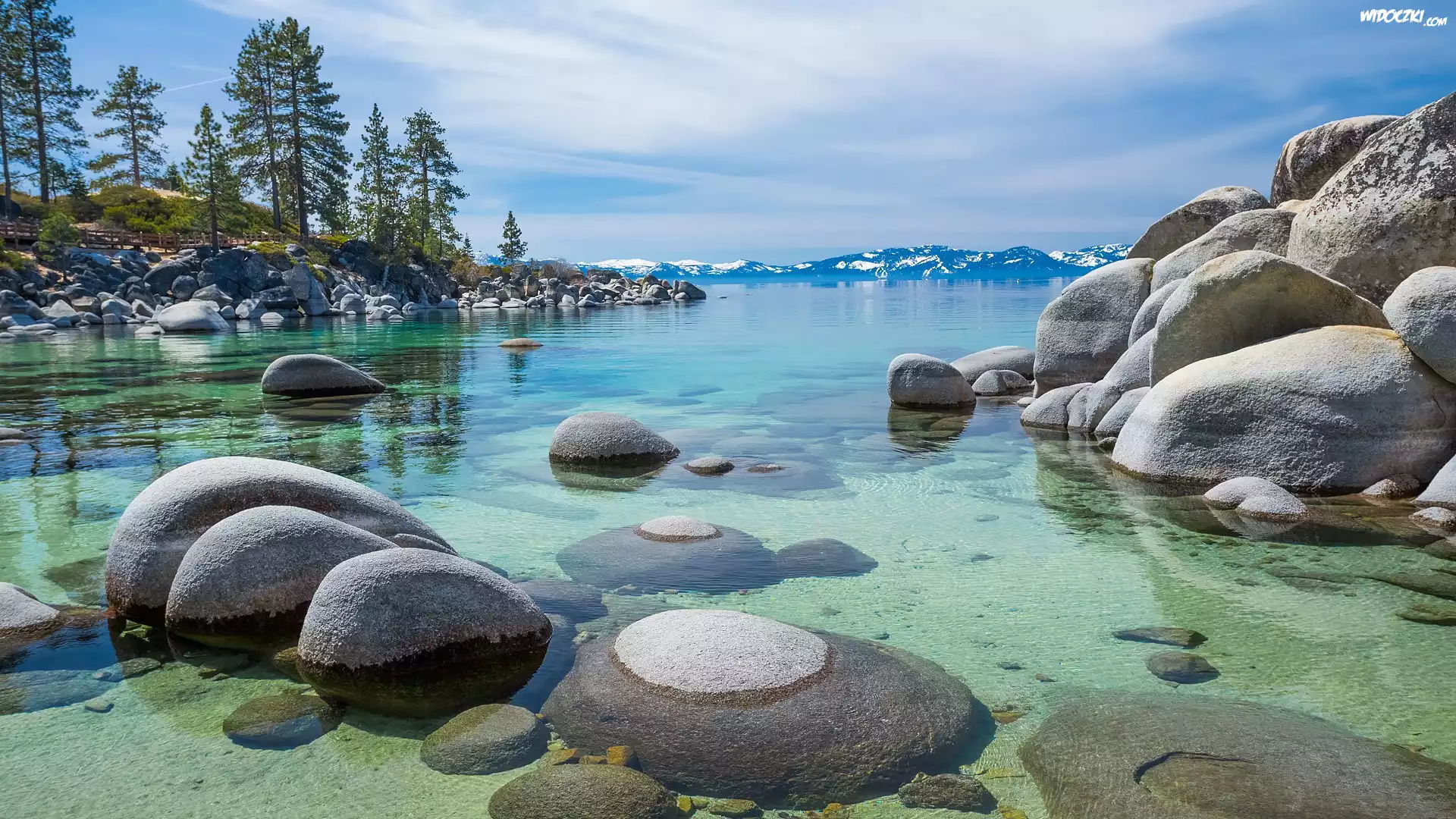 Zdjęcia, Jezioro, Tahoe Lake, Kamienie, Głazy, Drzewa, Kalifornia, Stany Zjednoczone