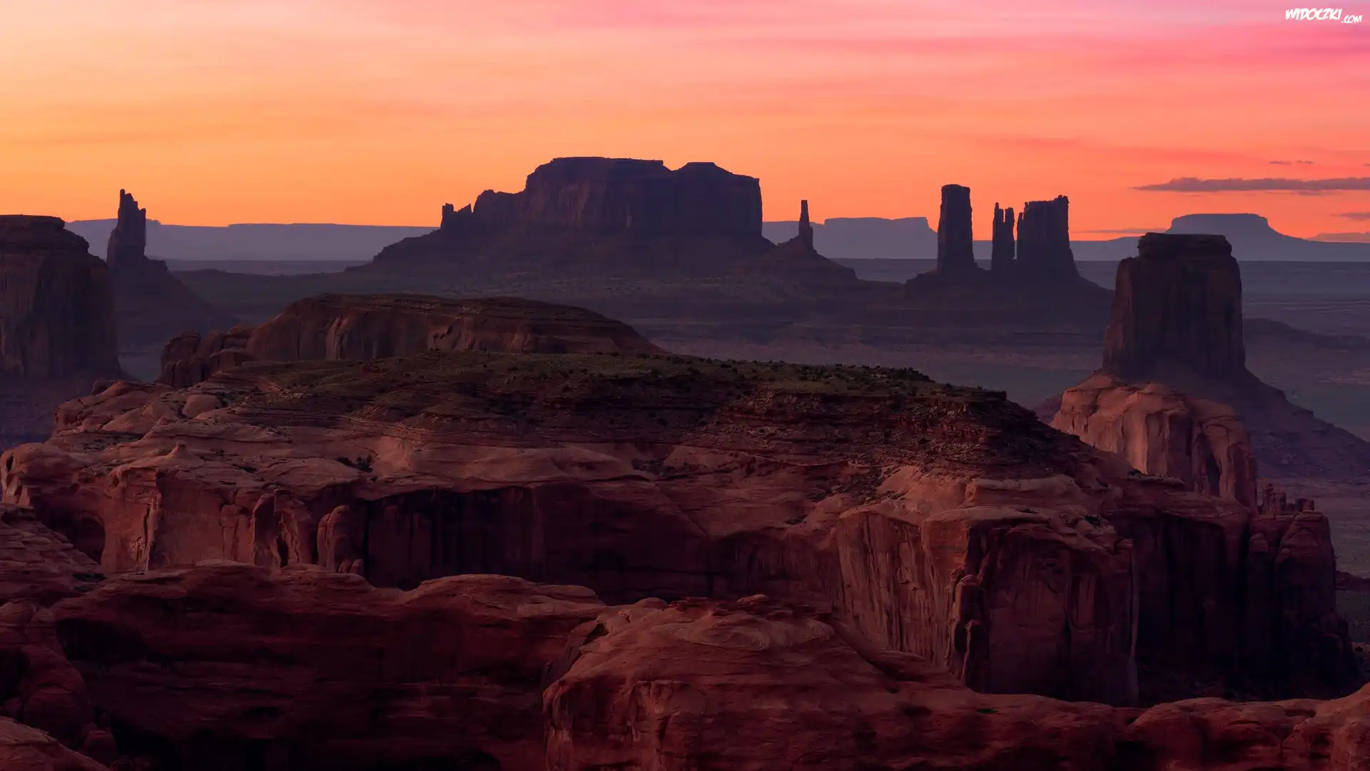 Góry, Skały, Monument Valley, Zachód słońca, Stany Zjednoczone