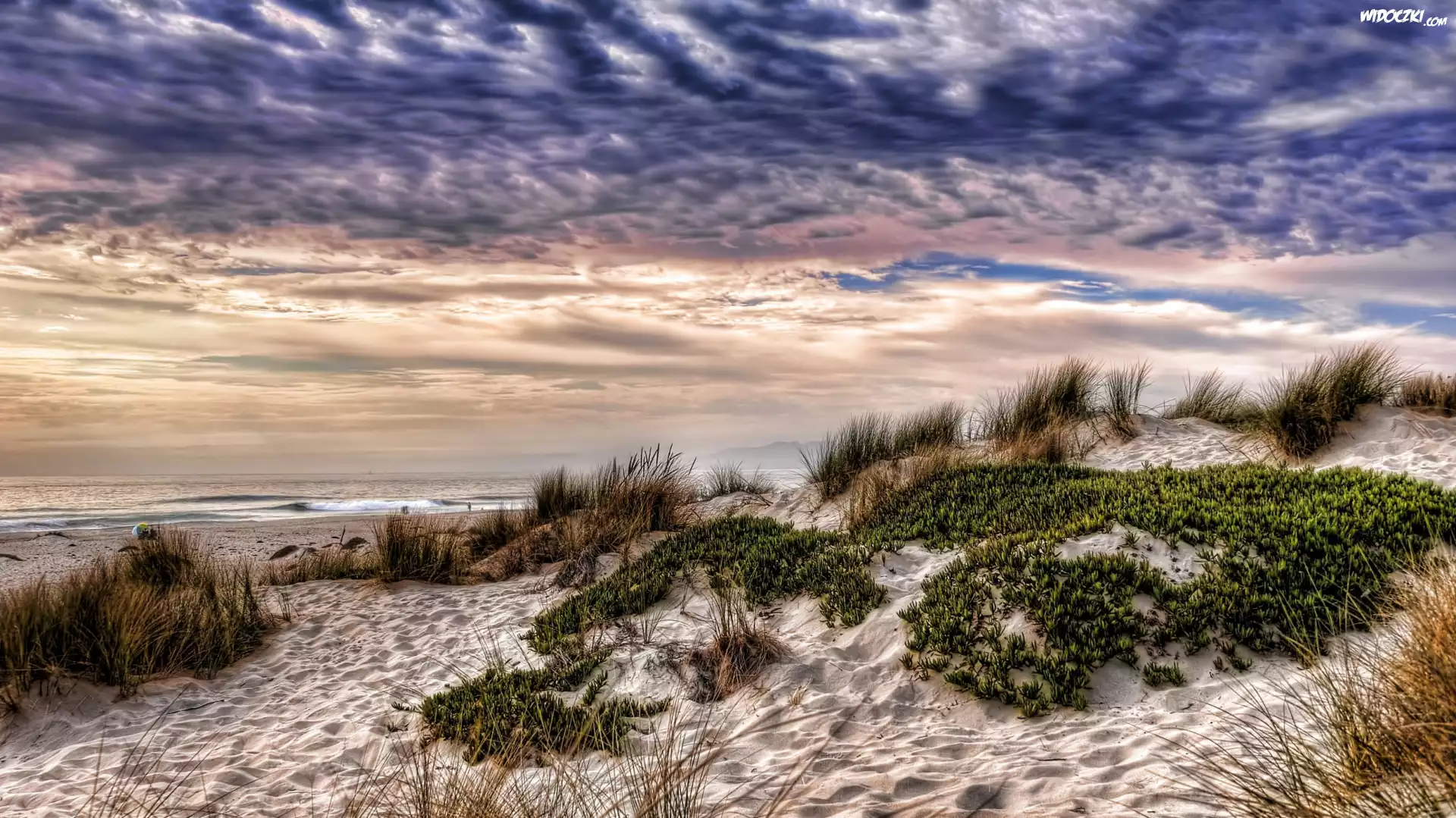 Stany Zjednoczone, Kalifornia, Oxnard, Plaża, Morze, Chmury, Piasek